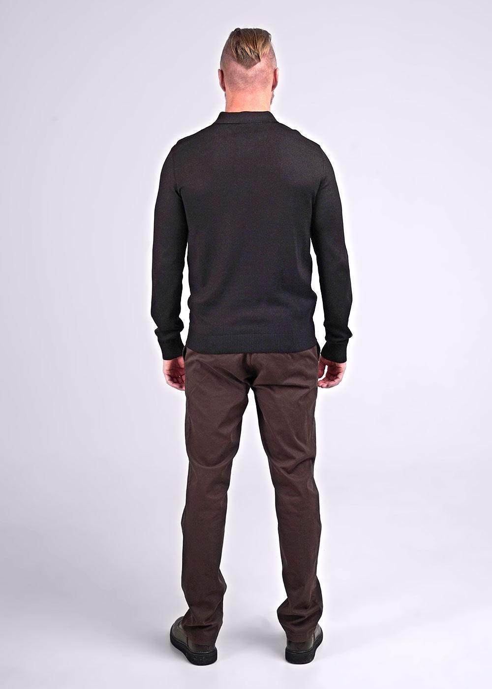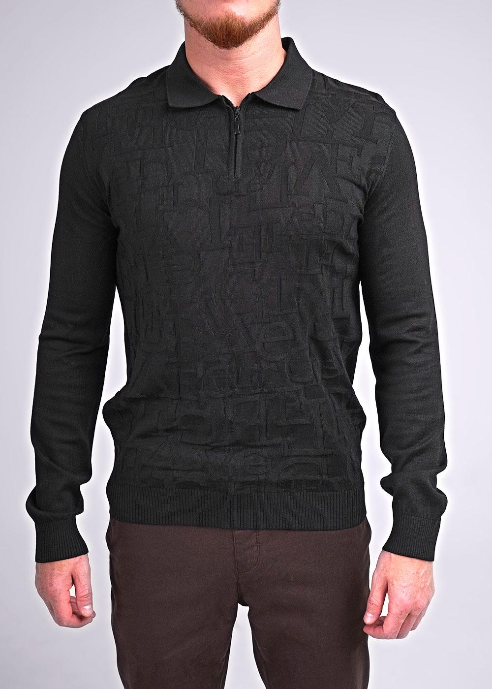 Мужское вязаное поло на молнии с длинным рукавом. Модель связана из приятной хлопковой пряжи с добавлением акрила с вывязанным графическим узором по переду. Изделие можно сочетать как в классическом стиле, так и в повседневном.
