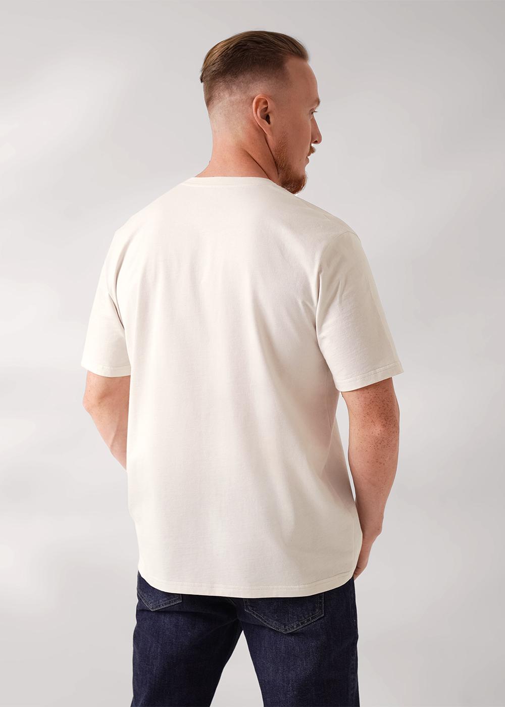 Футболка увеличенного объёма с круглой горловиной из хлопкового полотна. Изделие дополнено имиджевым принтом. Данная модель прекрасно впишется в любой гардероб и составит образ с брюками или джинсами.