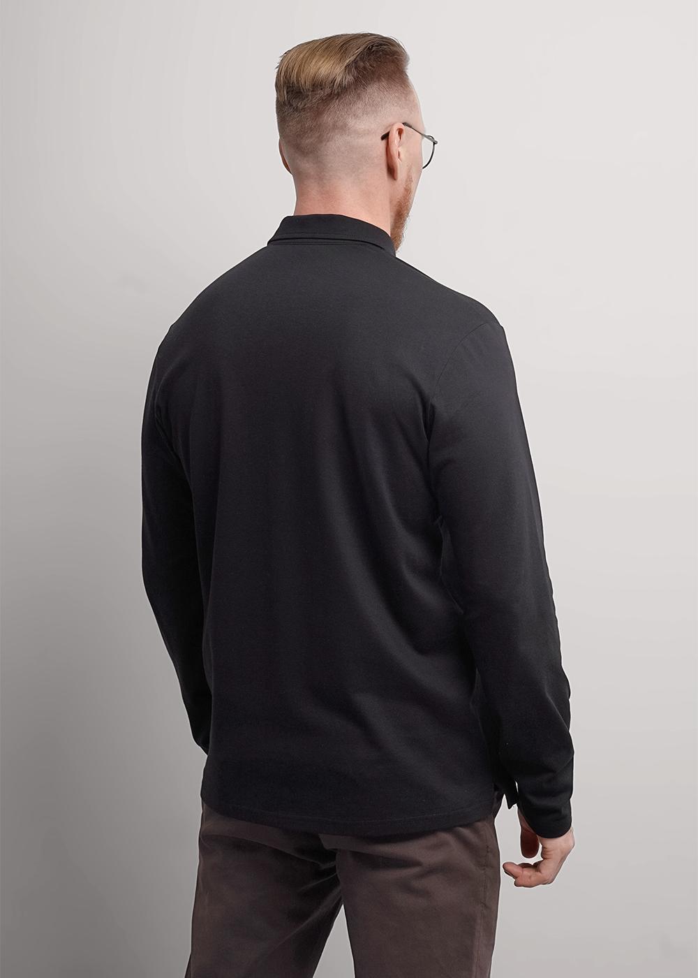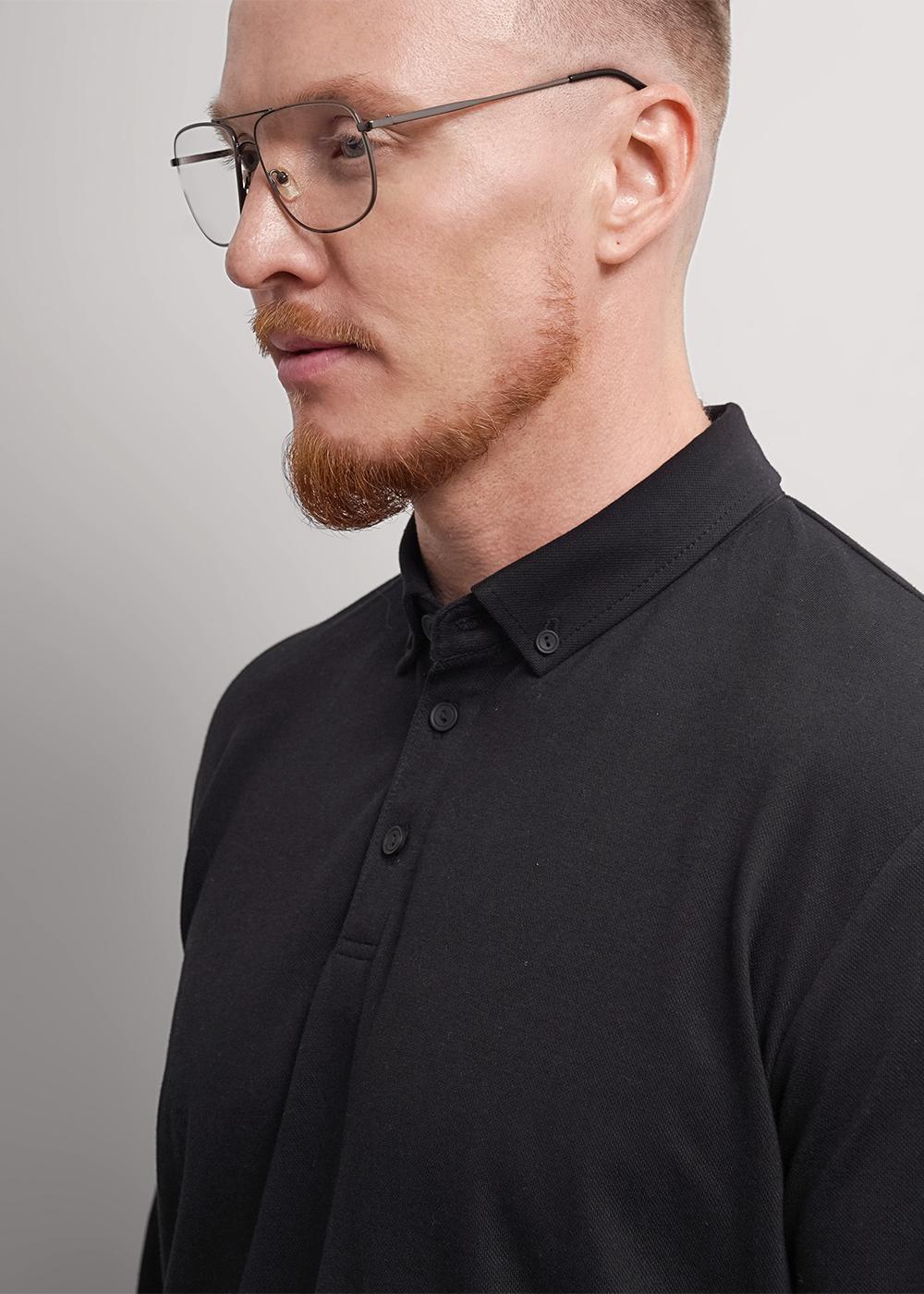 Рубашка-поло с длинным рукавом. Изделие выполнено из трикотажного полотна с кроеным отложным воротником. Модель дополнена фурнитурой. Такая рубашка-поло отлично сочетается с брюками или джинсами и подходит для учебы.