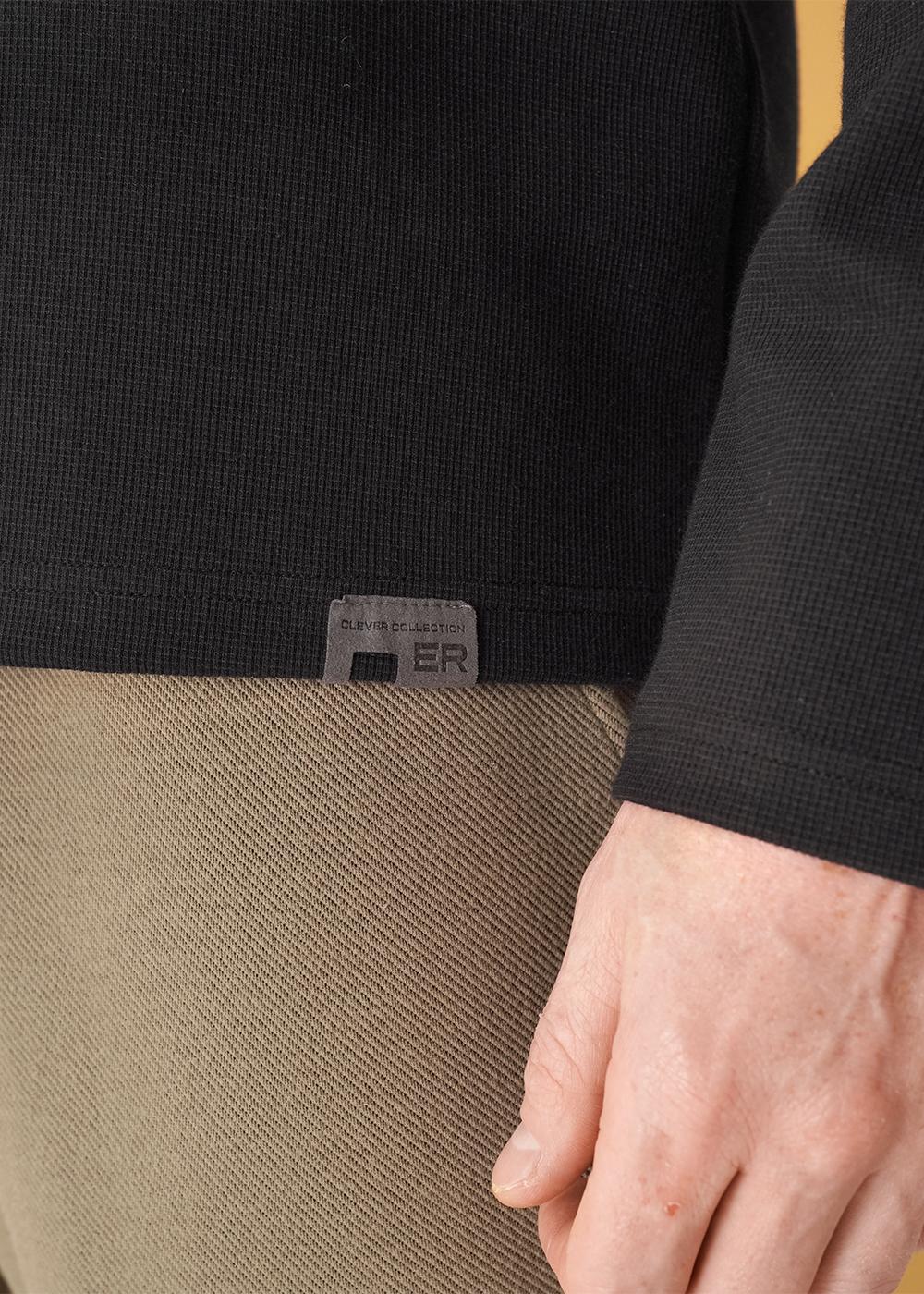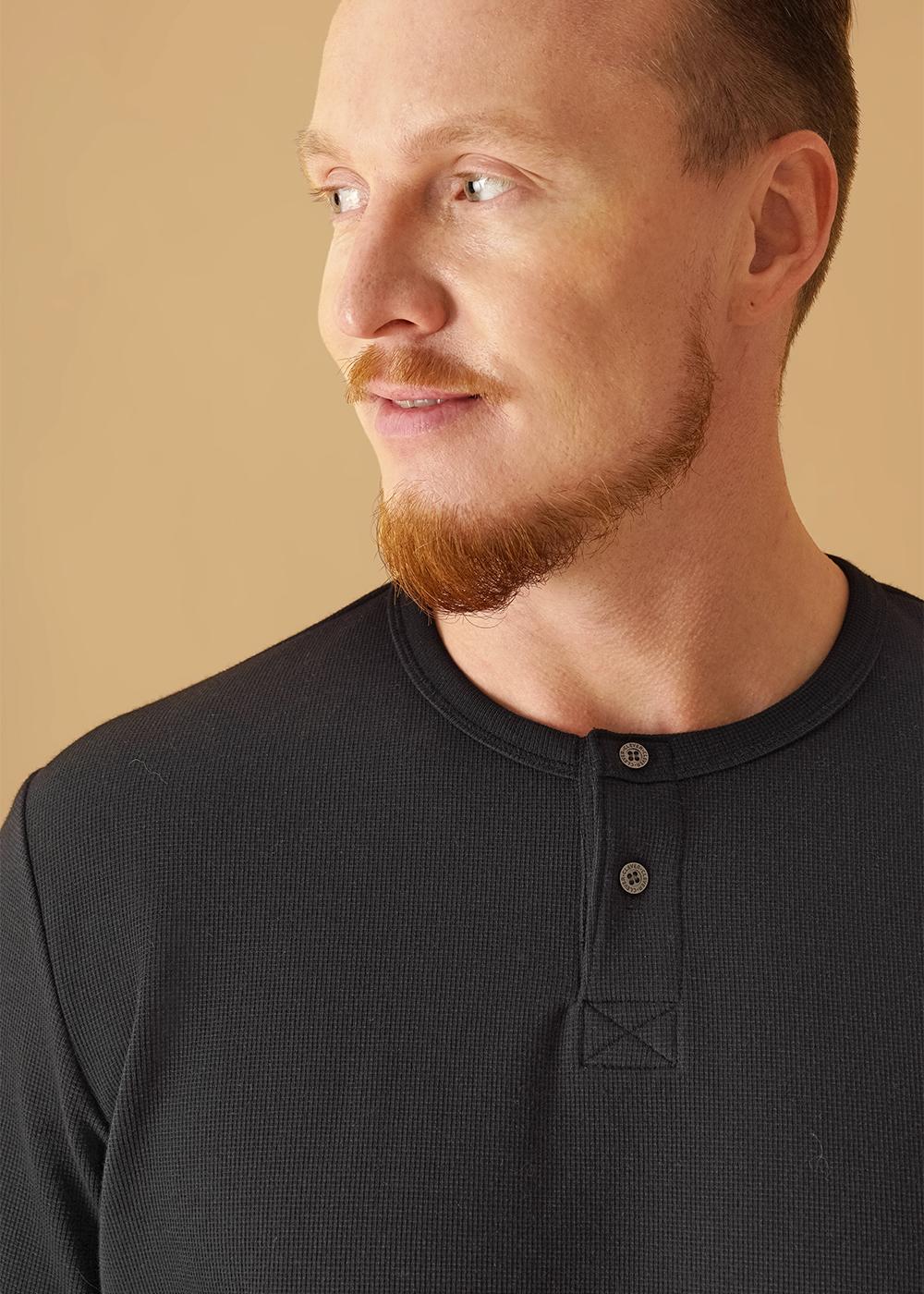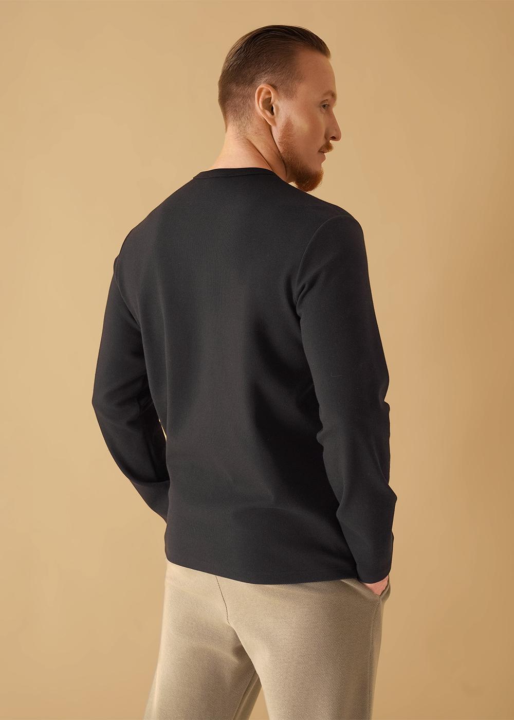 Лонгслив мужской с длинным рукавом, округлой горловиной и планкой, выполнен из фактурного трикотажного "вафля". Модель дополнена имиджевой фурнитурой. Прекрасно подойдёт для любого низа благодаря своей универсальности.