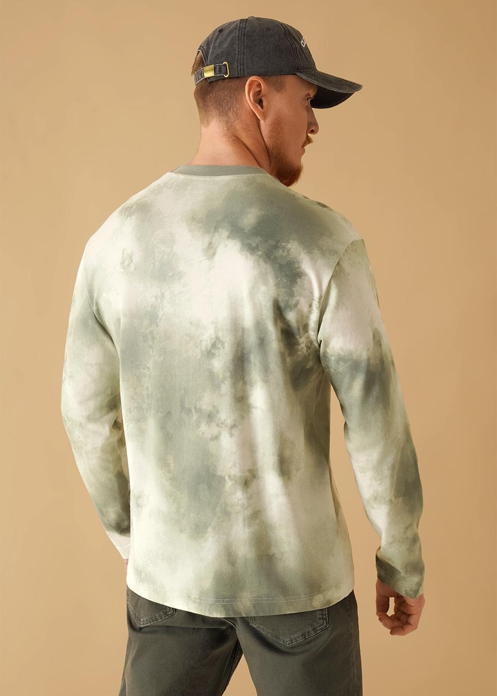 Стильный мужской джемпер в хаотичную набивку из хлопкового трикотажного полотна. Изделие с круглым вырезом горловины и длинным рукавом. Модель дополняет принт и имиджевая фурнитура. Идеальный вариант для повседневного использования.