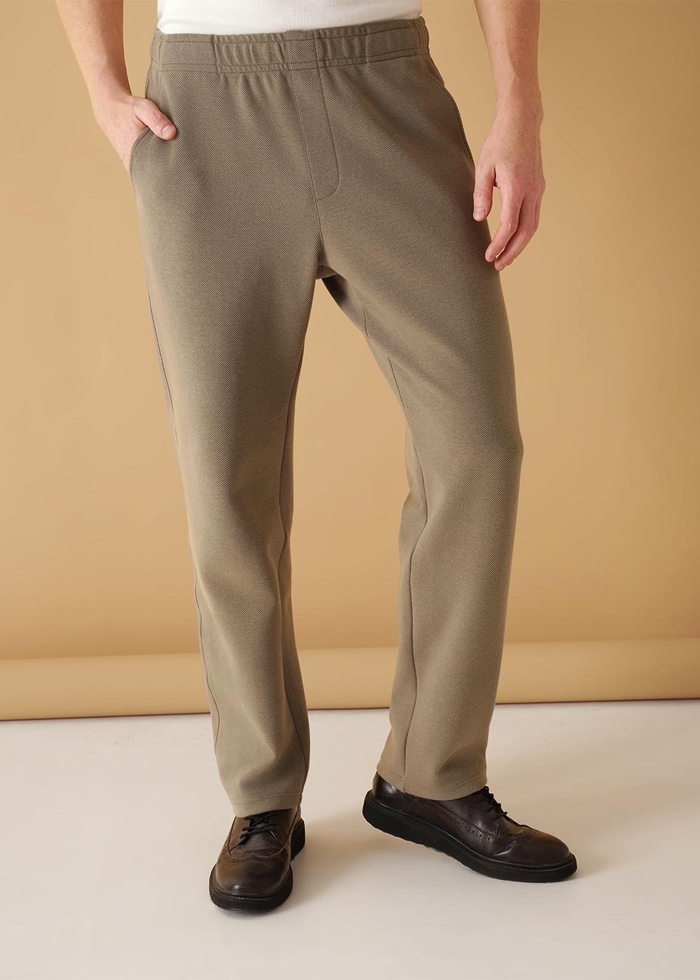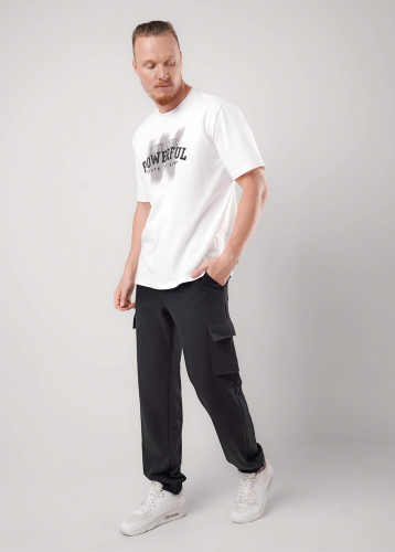 Прямые мужские зауженные брюки из трикотажного фактурного полотна. На эластичном поясе с регулируемой шнуровкой. Функциональность модели придают боковые карманы. Брюки эргономичные и удобные.
