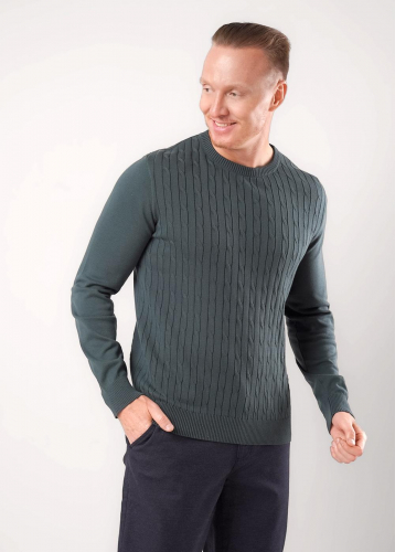 Стильный мужской комбинированный джемпер из трикотажного фактурного полотна. Изделие с круглым вырезом горловины и длинным рукавом на манжете. Модель дополняется нагрудным карманом. Отличный вариант на каждый день и встреч с друзьями.