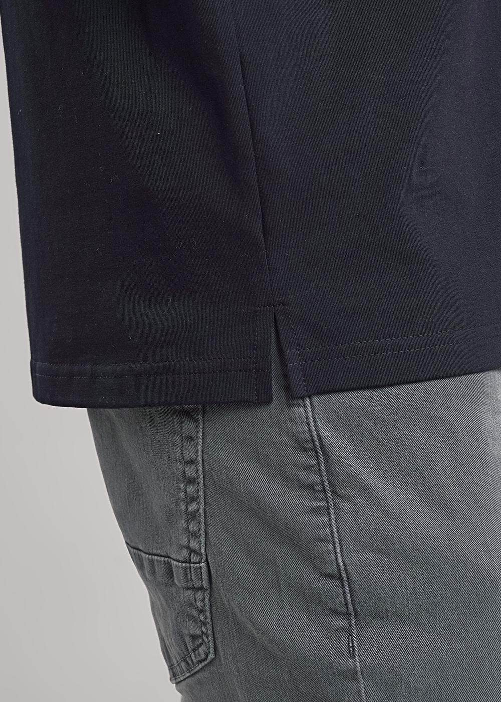 Футболка поло прямого кроя из трикотажного плотного, гладкого полотна. Отложной воротник. Короткие рукава. Застежка на кнопки. Изделие дополнено имиджевым принтом. Отличный вариант для встреч с друзьями.