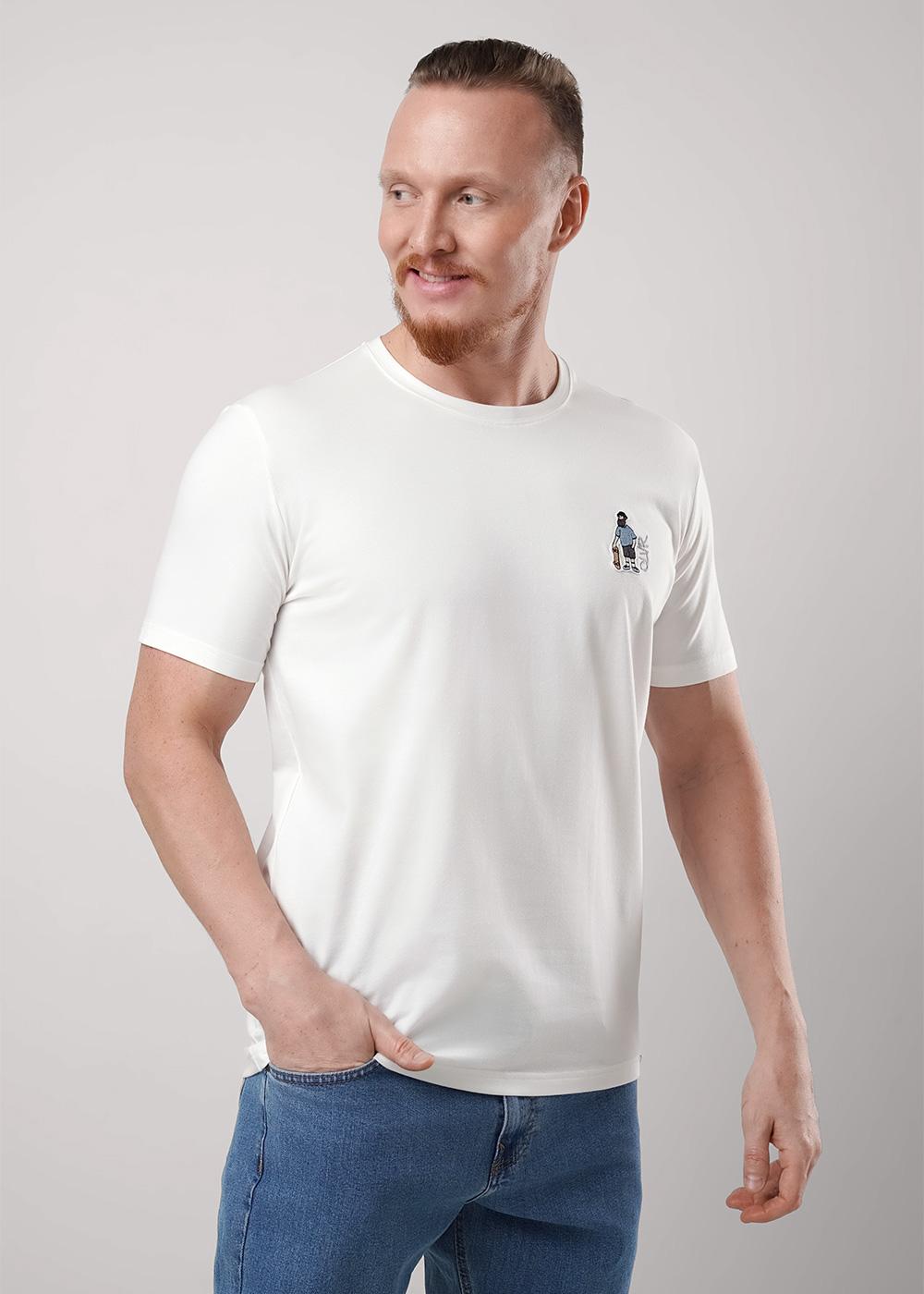 Футболка из трикотажного полотна с коротким рукавом и круглой горловиной. Дополнена имиджевой фурнитурой и оригинальной вышивкой. Отличный вариант для встреч с друзьями и прогулок.