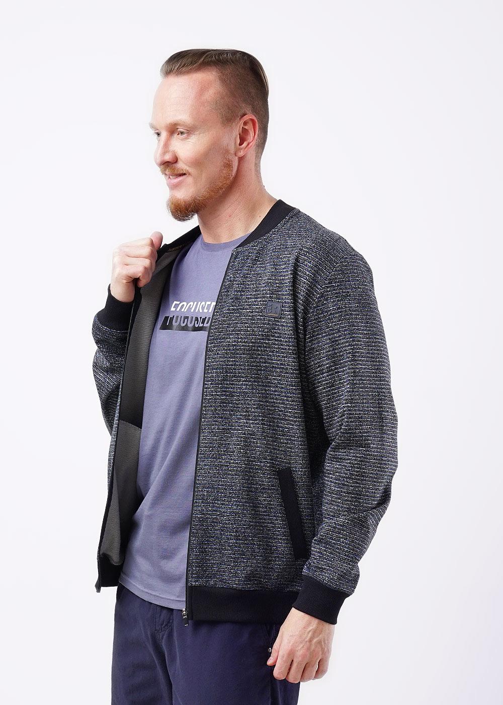 Толстовка-бомбер мужская на стойке с молнией. Спереди наклонные карманы с листочкой. Данная модель прекрасно впишется в любой гардероб, станет прекрасным дополнением к брюкам или джинсам с футболкой.