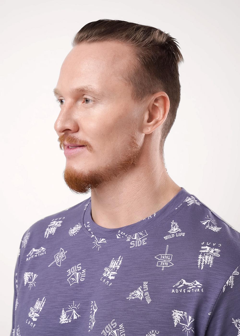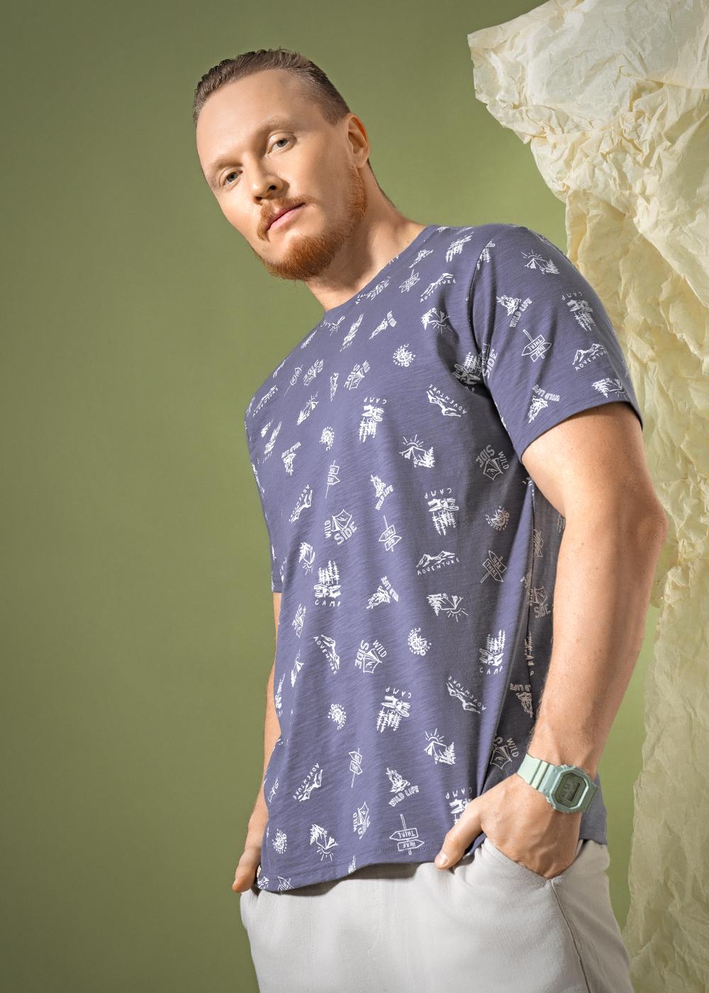 Футболка из дышащего хлопкового фактурного полотна "флам" с округлой горловиной. Модель с абстрактно-шрифтовой набивкой. Прекрасно впишется в гардероб и подойдёт к любому низу. В данной футболке можно отправиться на работу или прогулку с друзьями.