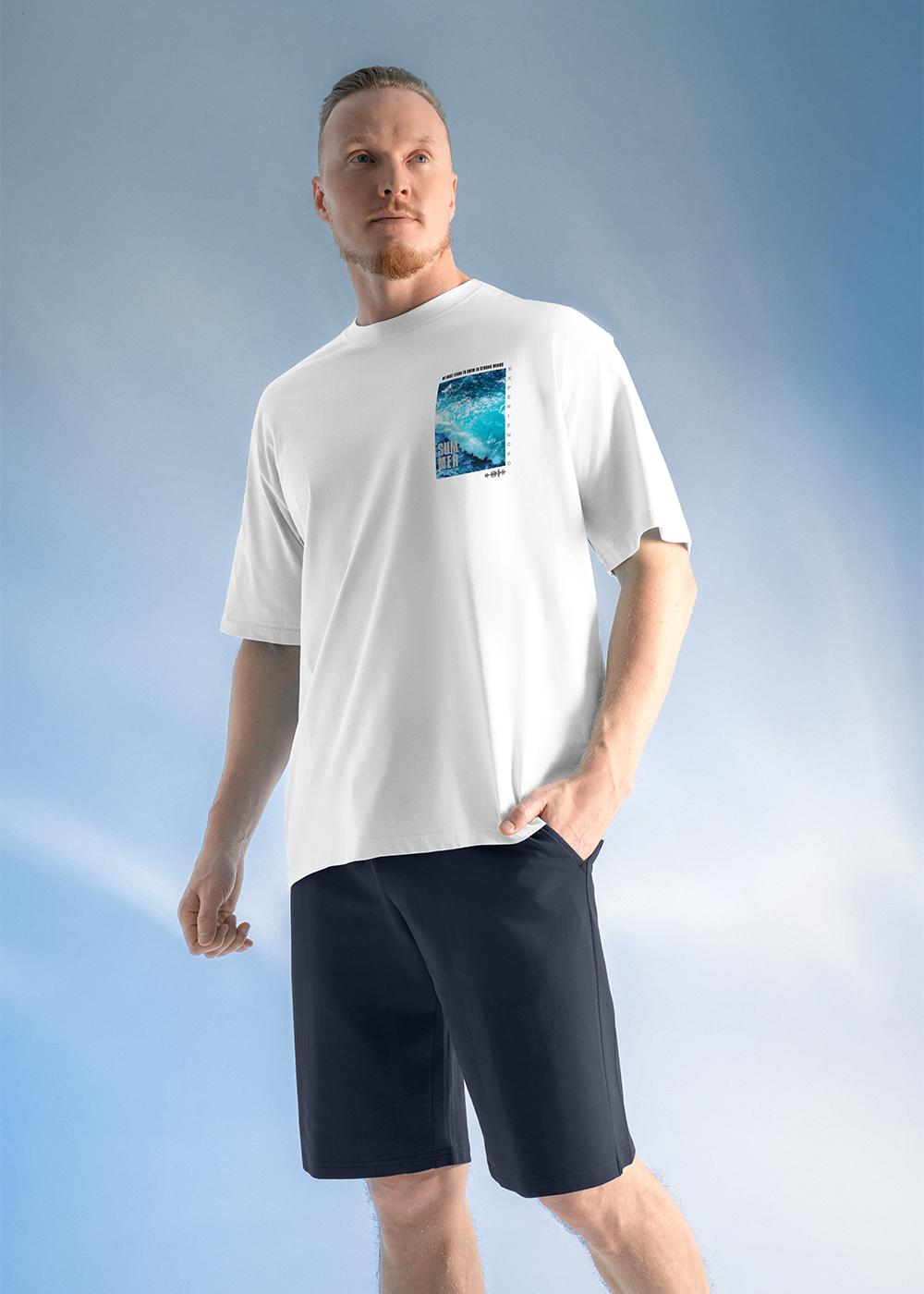 Молодежная футболка увеличенного объема из хлопкового полотна с ярким принтом. Можно сочетать с джинсами или шортами, подойдет для встреч с друзьями и путешествий.