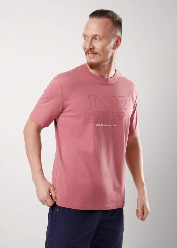 Футболка свободного кроя с круглым вырезом горловины и коротким рукавом. Модель выполнена из трикотажного хлопкового полотна. Изделие дополнено дизайнерским принтом и имиджевой фурнитурой. Универсальная вещь мужского гардероба на каждый день.