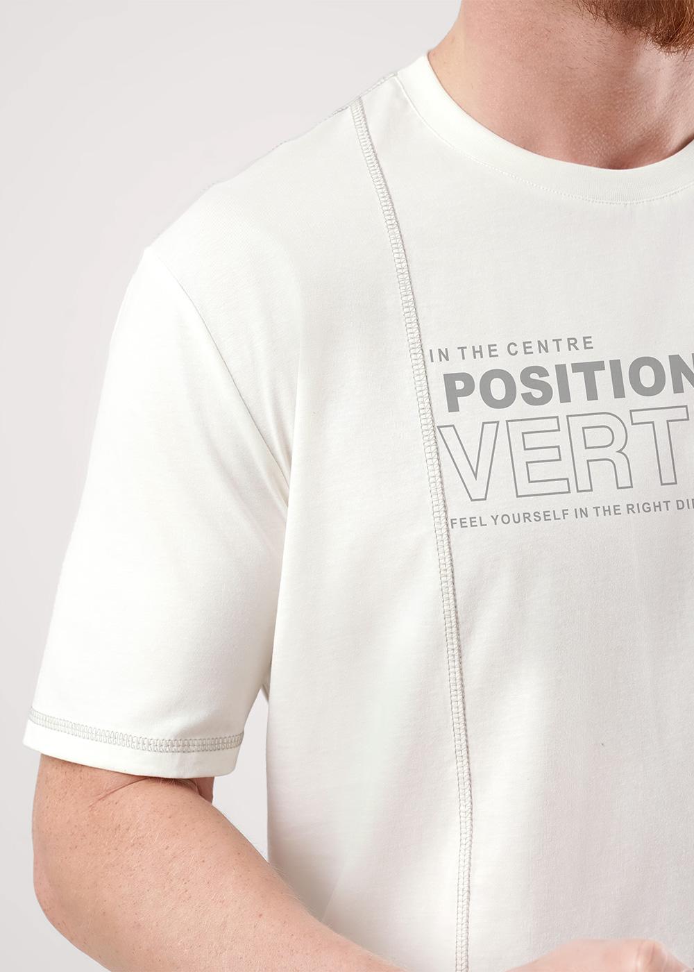 Футболка из дышащего хлопкового полотна. Модель с округлой горловиной, коротким рукавом, декоративными резами с отделочными строчками и шрифтовым принтом. Отличное решение для прогулки с друзьями.
