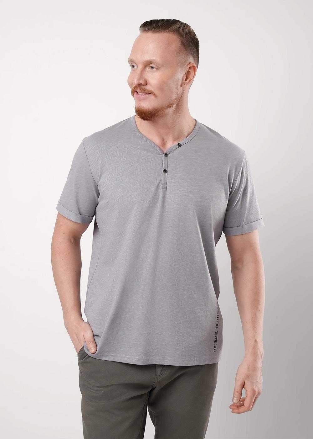 Футболка с планкой на пуговицы из фактурного хлопкового полотна флам. Данную модель дополняет принт и имиджевая фурнитура. Прекрасное решение для встречи с друзьями или похода на работу. Составит комплект с брюками или джинсами.