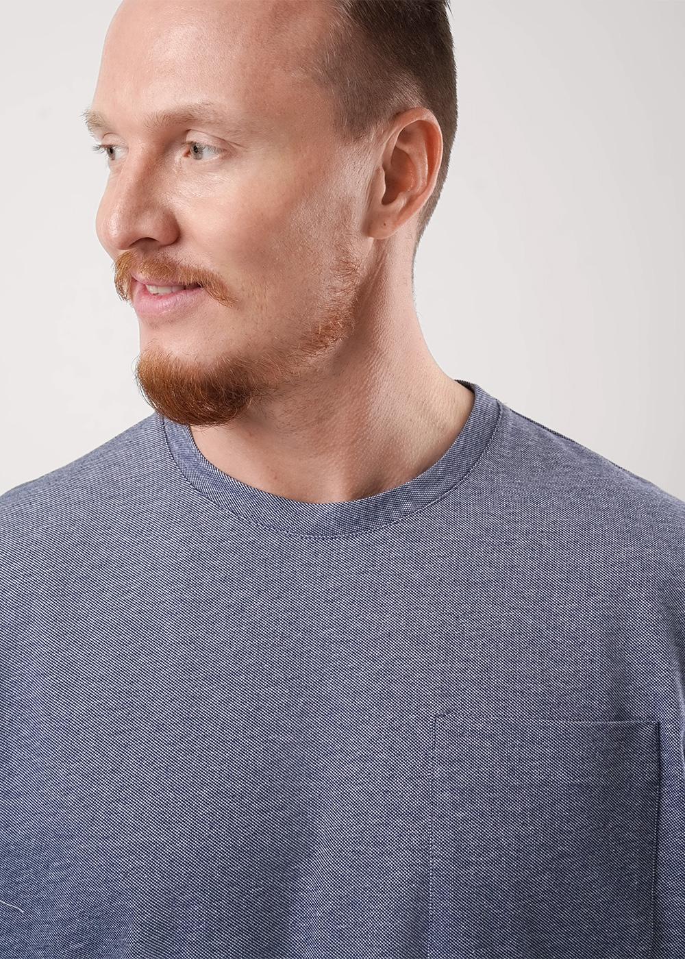 Футболка мужская с круглым вырезом горловины из трикотажного фактурного полотна "пике". Изделие дополняет накладной карман на груди. Отлично смотрится в комплекте с шортами или джинсами.