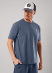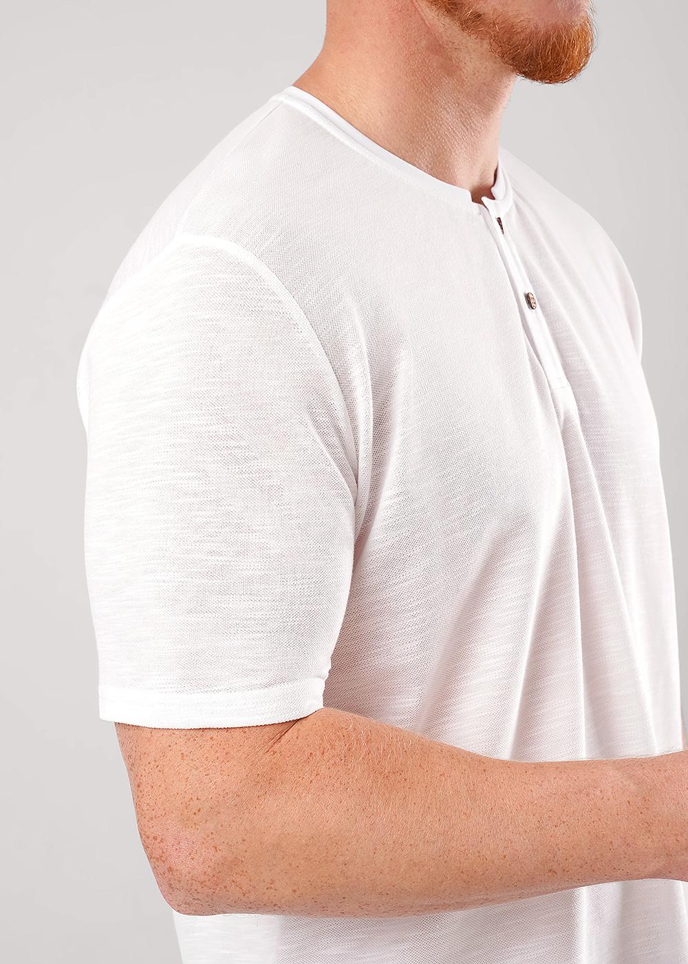 Футболка мужская из дышащего хлопкового полотна. Модель с круглым вырезом горловины, планкой и коротким втачным рукавом. Благодаря небольшому шрифтовому принту и фирменной фурнитуре образ выглядит завершенным.