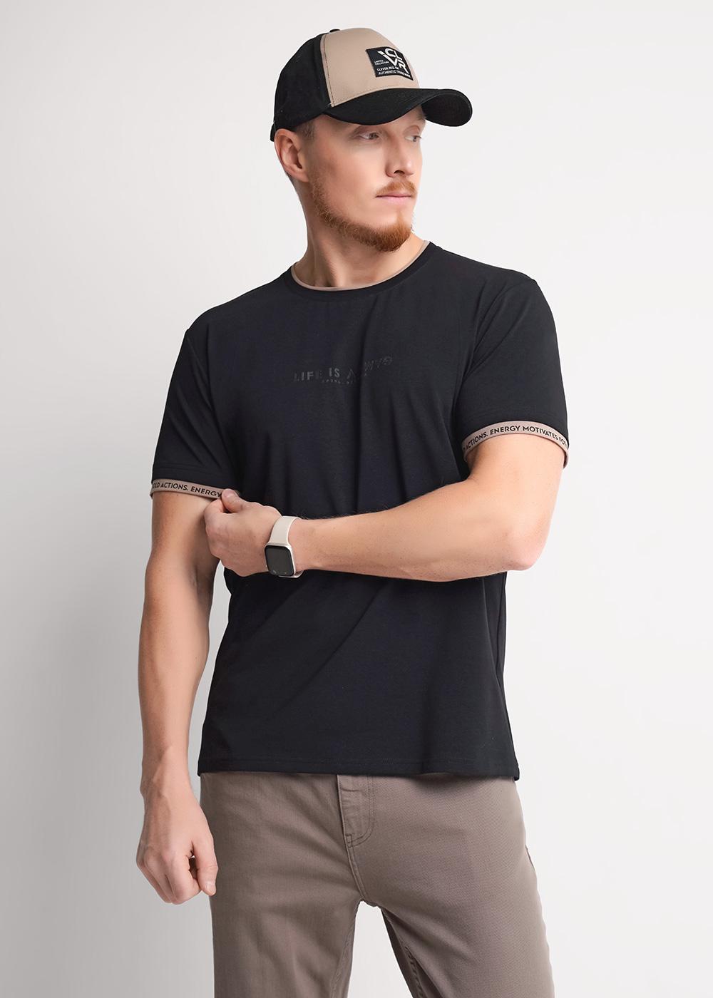 CLE 562144/03г_п Футболка мужская 562144/03г_п чёрный/т.бежевый