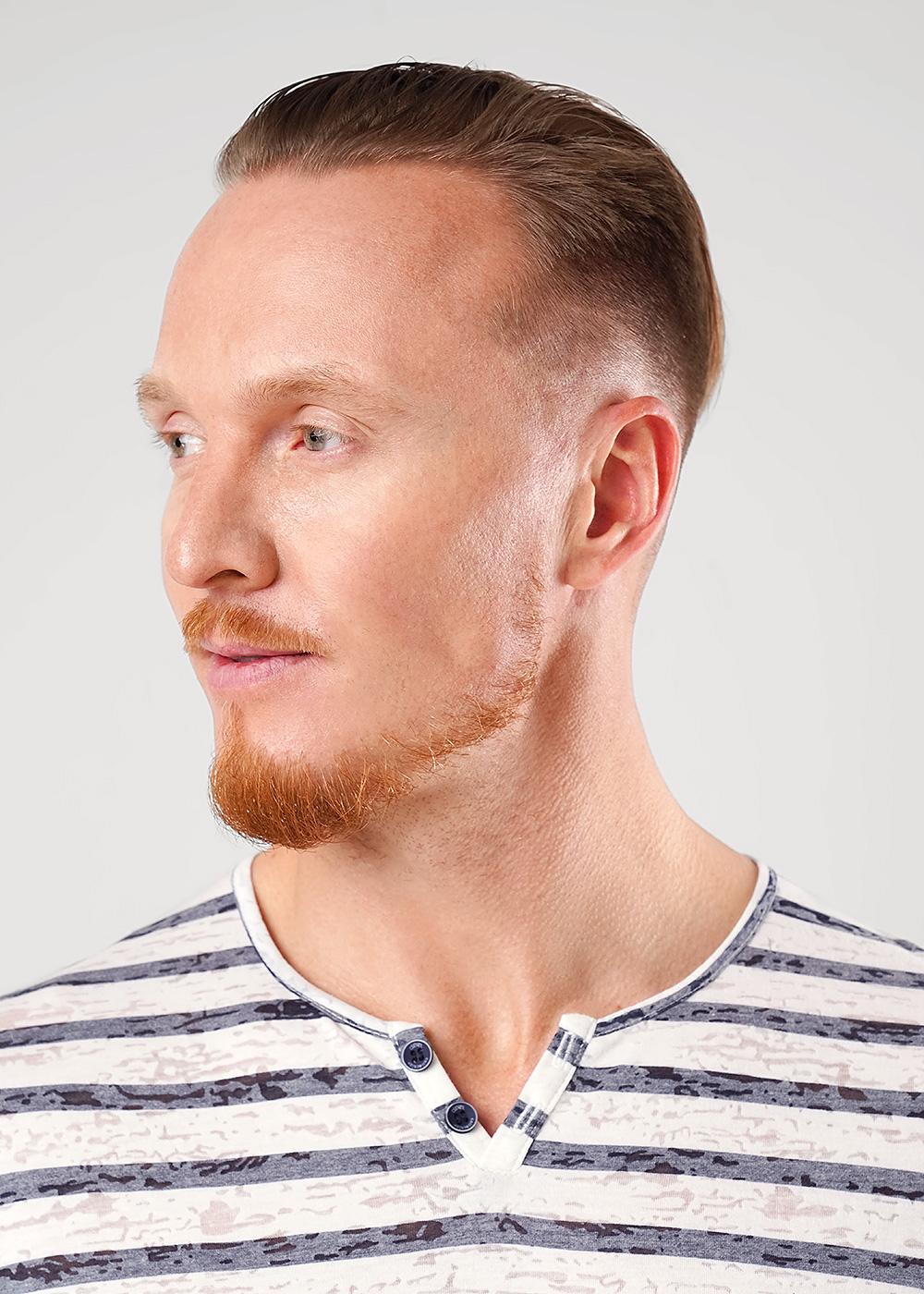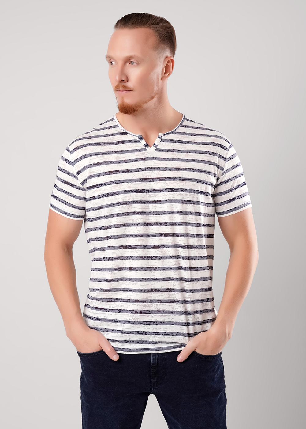 Футболка мужская с круглым вырезом горловины и декоративной планкой с пуговицами, с коротким втачным рукавом. Модель дополнена имиджевой фурнитурой, что делает образ стильным и завершенным.