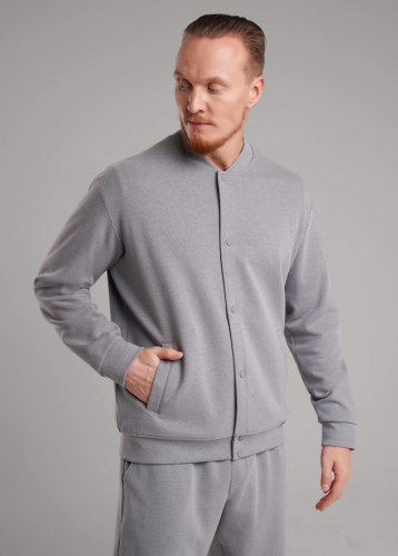 Мужской бомбер на кнопках с воротником-стойкой ,эластичными манжетами и карманами. Модель выполнена из трикотажного полотна "диагональ". Универсальная модель для стильных повседневных образов.