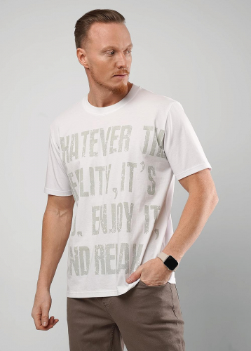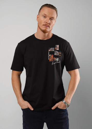 Футболка мужская, увеличенного объема, из хлопкового полотна, круглым вырезом горловины и коротким втачным рукавом. Стильный принт придает модели оригинальность. Отличный вариант для прогулки или встречи с друзьями.