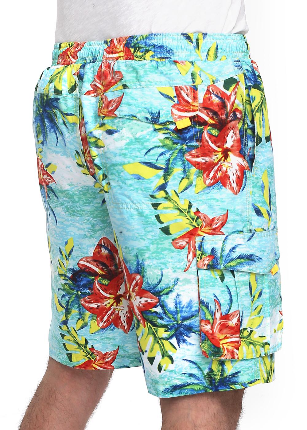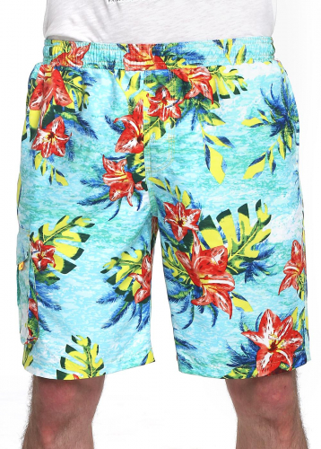 Отпускается р/р (5шт в упаковке). Пляжные мужские шорты в набивку с поясом на резинке имеют два накладных кармана по бокам и один накладной карман на липучке сзади. Выполнены из полиэстера. Модель исполнена в актуальных цветах и отлично подойдет для летних прогулок и плавания.