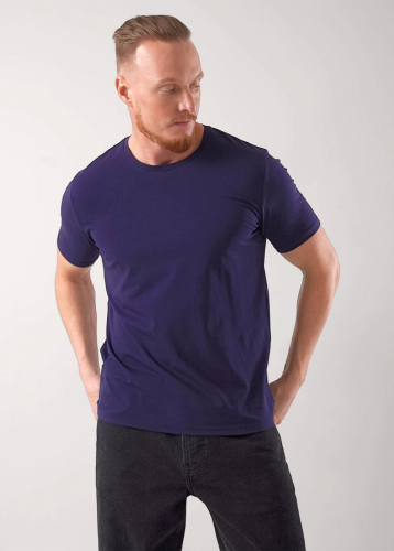 Базовая однотонная футболка стандартного объема с круглой горловиной, втачным рукавом из хлопкового полотна с добавлением эластана. Является неотъемлемой частью мужского гардероба.