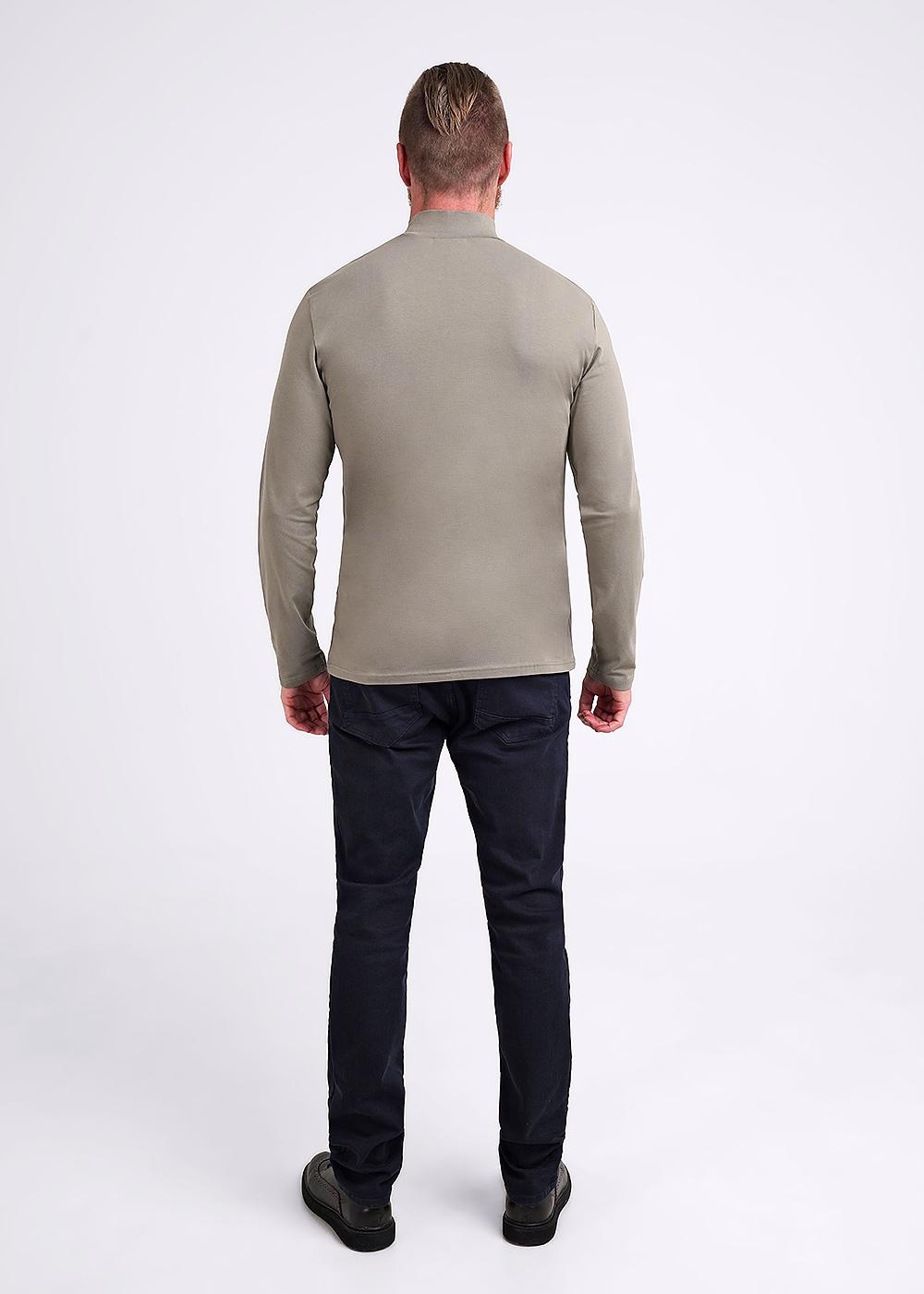 Джемпер прямого силуэта, длинный рукав, горловина на стойке. Изделие выполнено из натурального полотна с добавлением эластана для удобства ношения.