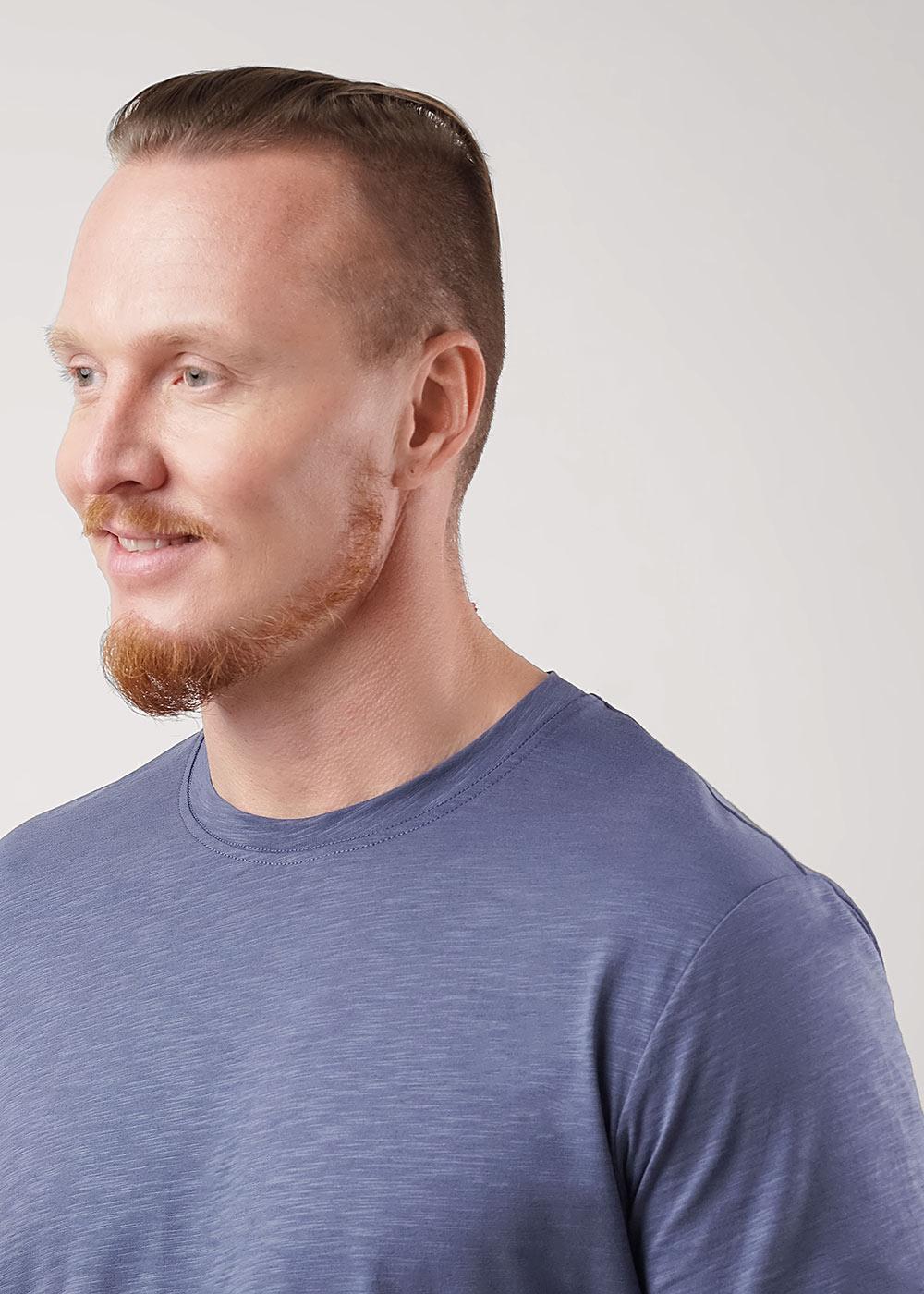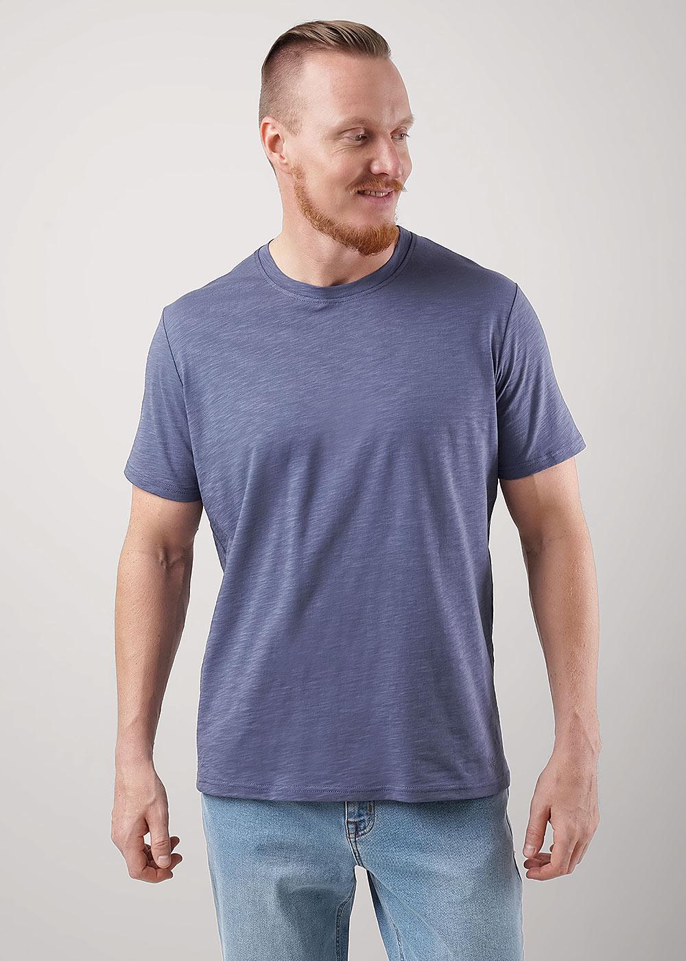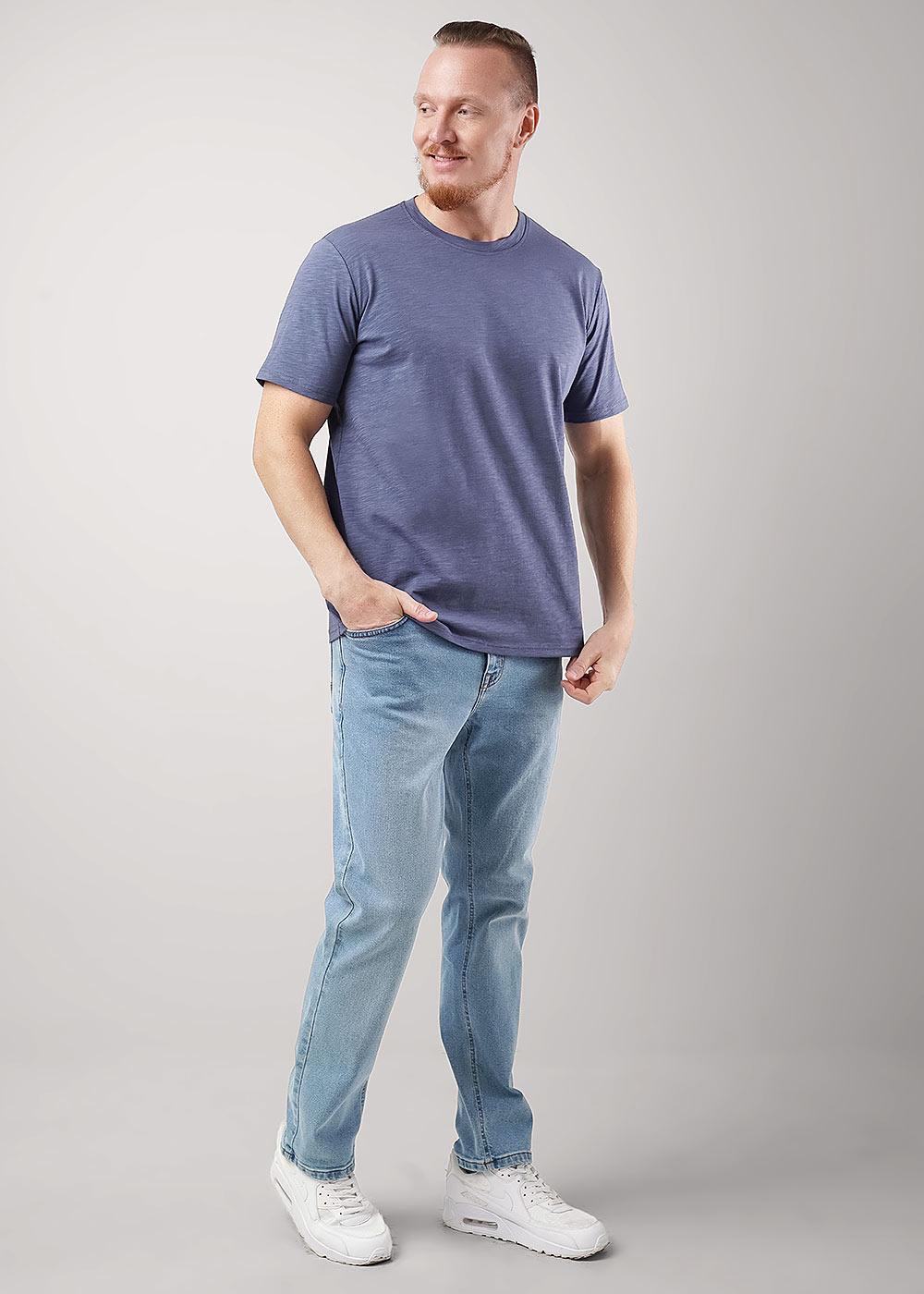 Футболка мужская с округлой горловиной и коротким втачным рукавом из фактурного полотна "флам". Изделие дополнено имиджевым принтом в цвет полотна. Данная модель прекрасно комбинируется с джинсами или шортами благодаря своей универсальности.