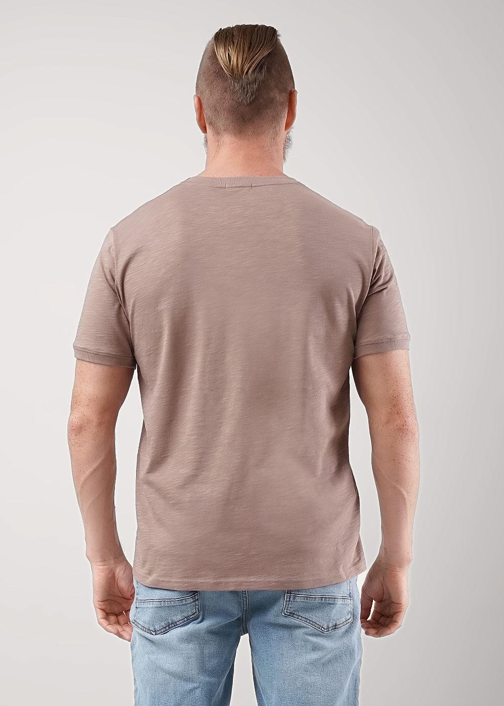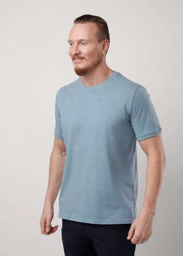 Футболка мужская с округлой горловиной и коротким втачным рукавом из фактурного полотна "флам". Изделие дополнено имиджевым принтом в цвет полотна. Данная модель прекрасно комбинируется с джинсами или шортами благодаря своей универсальности.