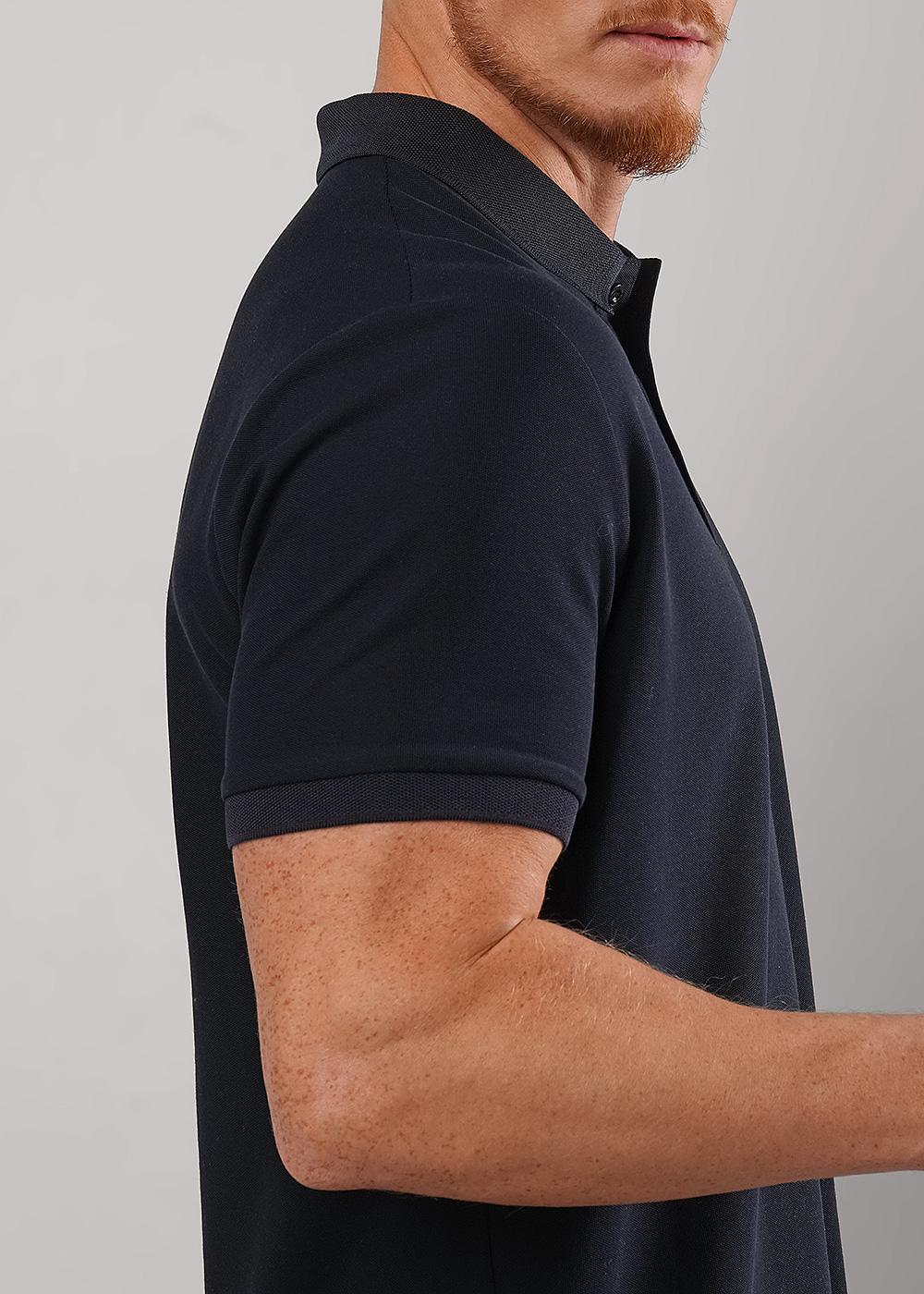 Мужская базовая футболка-поло. Модель дополнена вязанными отделками, фирменной фурнитурой и вышивкой. Изделие отлично сочетается с любыми брюками или джинсами.