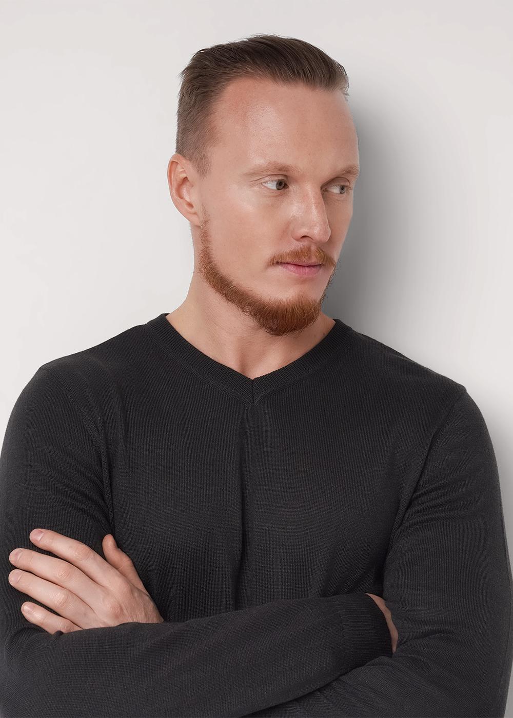 Джемпер мужской из смесовой хлопковой пряжи с длинным рукавом и с V- образной горловиной. Прекрасно сохраняет тепло, комфортный в носке. Отличное решение на холодное время года. Комбинируется с джинсами или брюками.