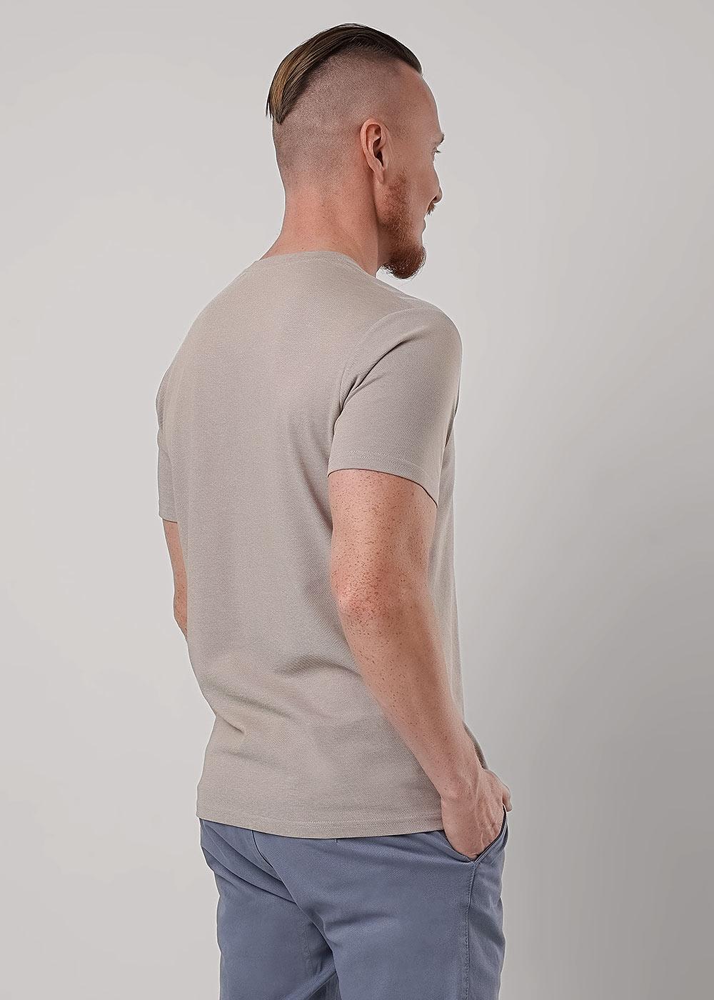 Футболка мужская с круглым вырезом горловины и коротким втачным рукавом из фактурного полотна пике. Изделие дополняет имиджевым принтом. Подойдет к любым брюкам или джинсам.