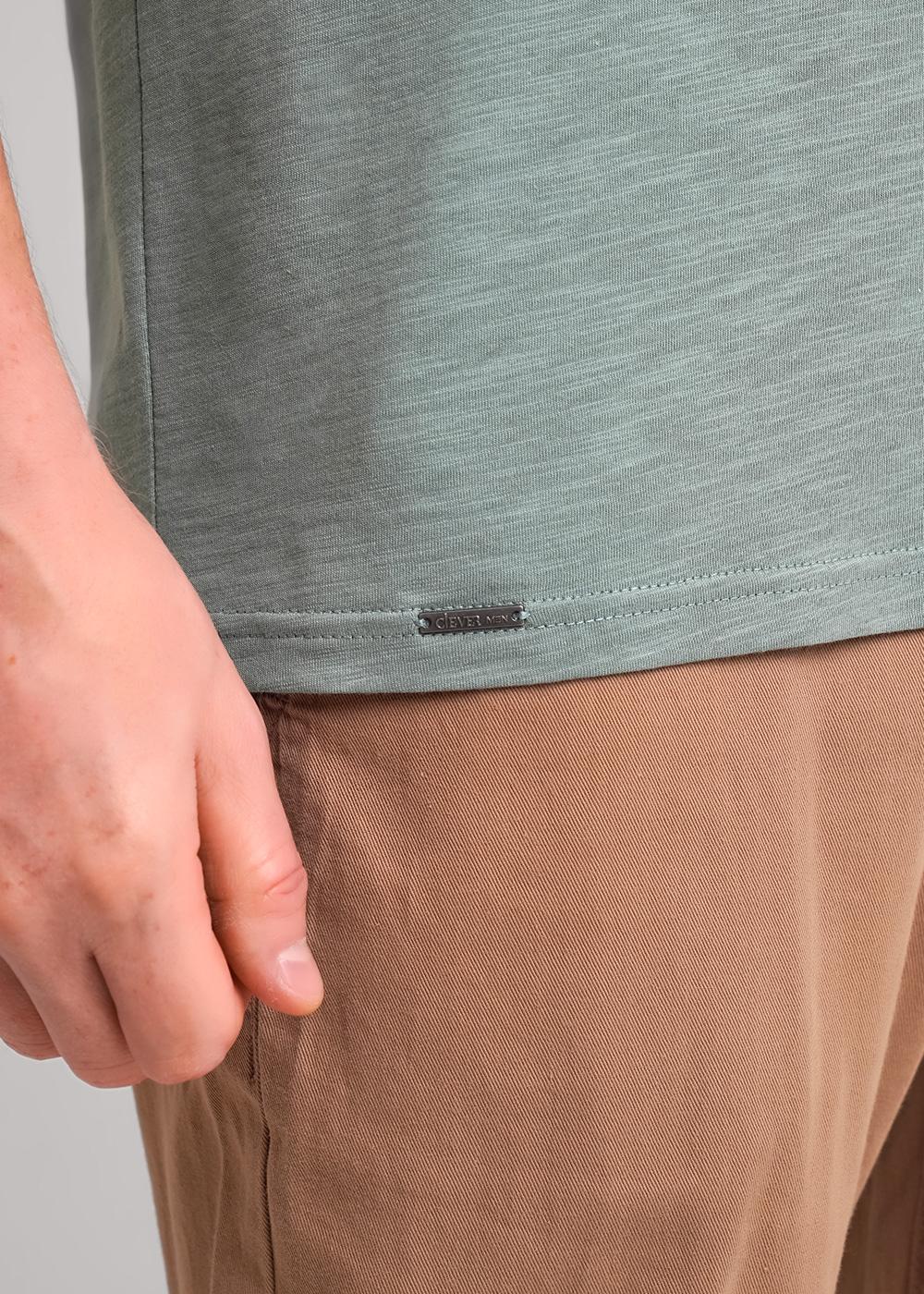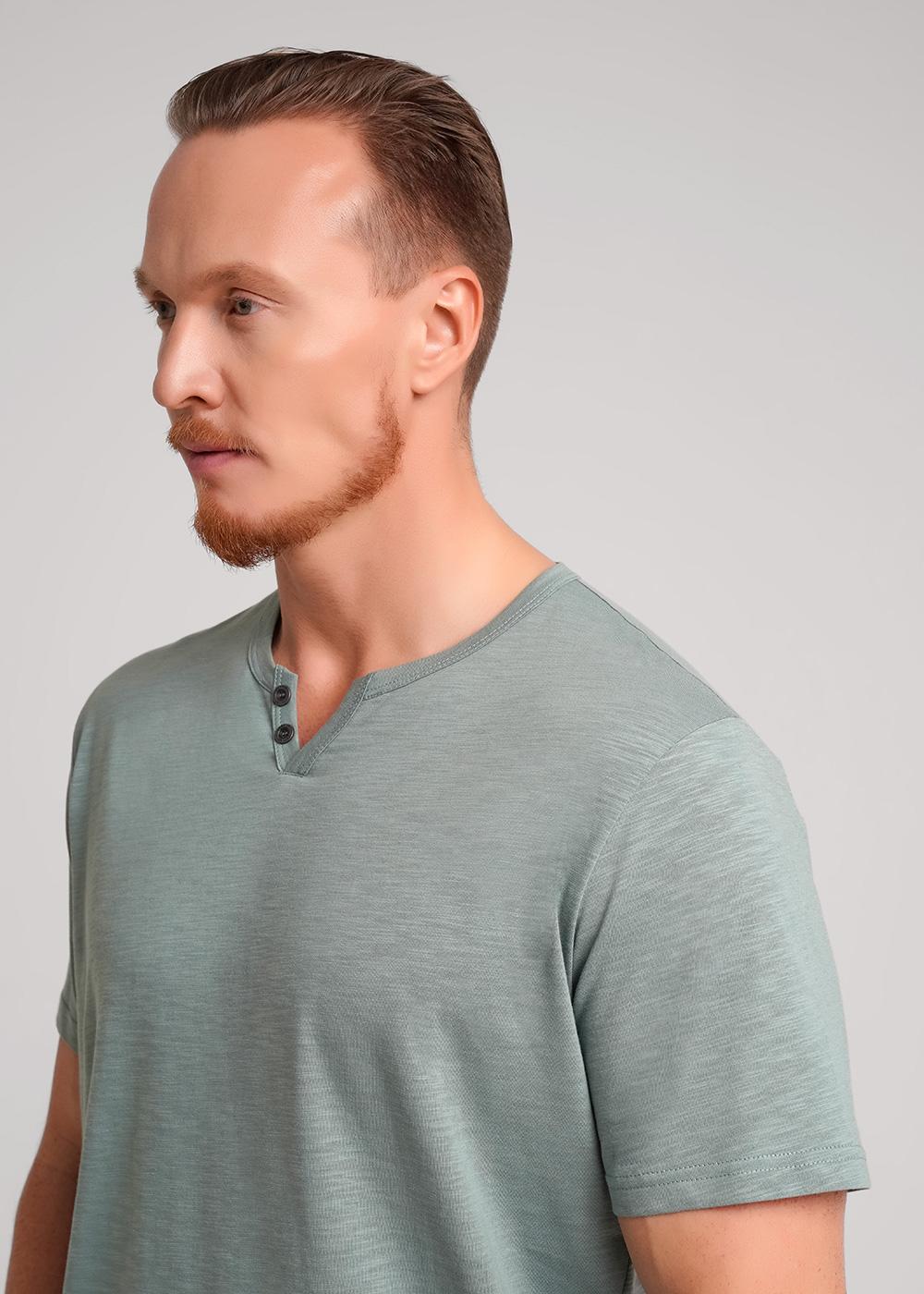 Футболка мужская с округлой горловиной и планкой из фактурного полотна флам. Данная модель прекрасно комбинируется с джинсами или шортами. Модель дополнена имиджевой фурнитурой. Отличное решение на лето для прогулок с друзьями или поездки на отдых.