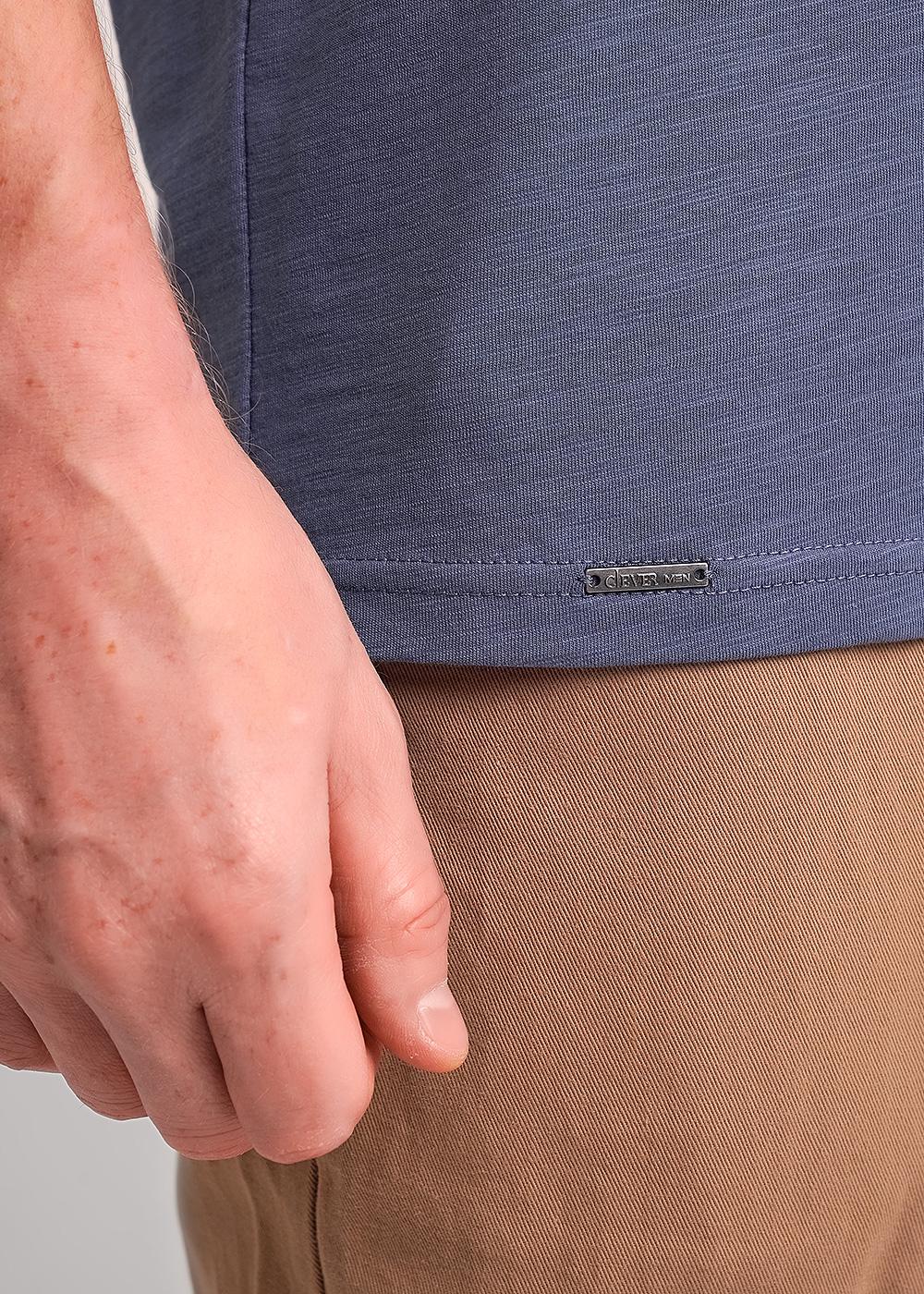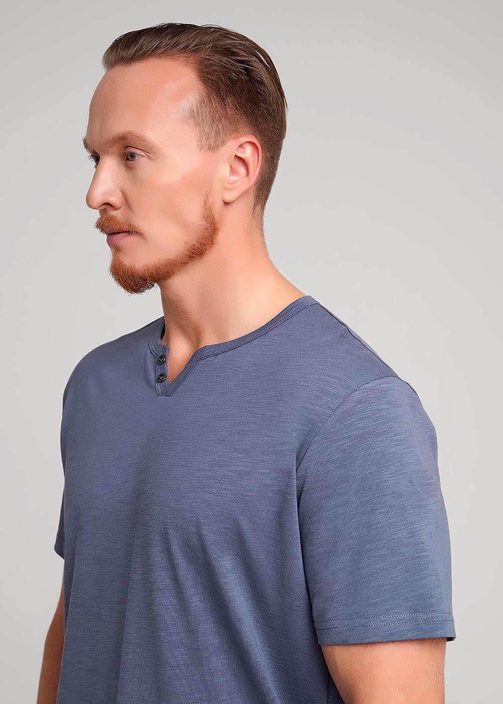 Футболка мужская с округлой горловиной и планкой из фактурного полотна флам. Данная модель прекрасно комбинируется с джинсами или шортами. Модель дополнена имиджевой фурнитурой. Отличное решение на лето для прогулок с друзьями или поездки на отдых.