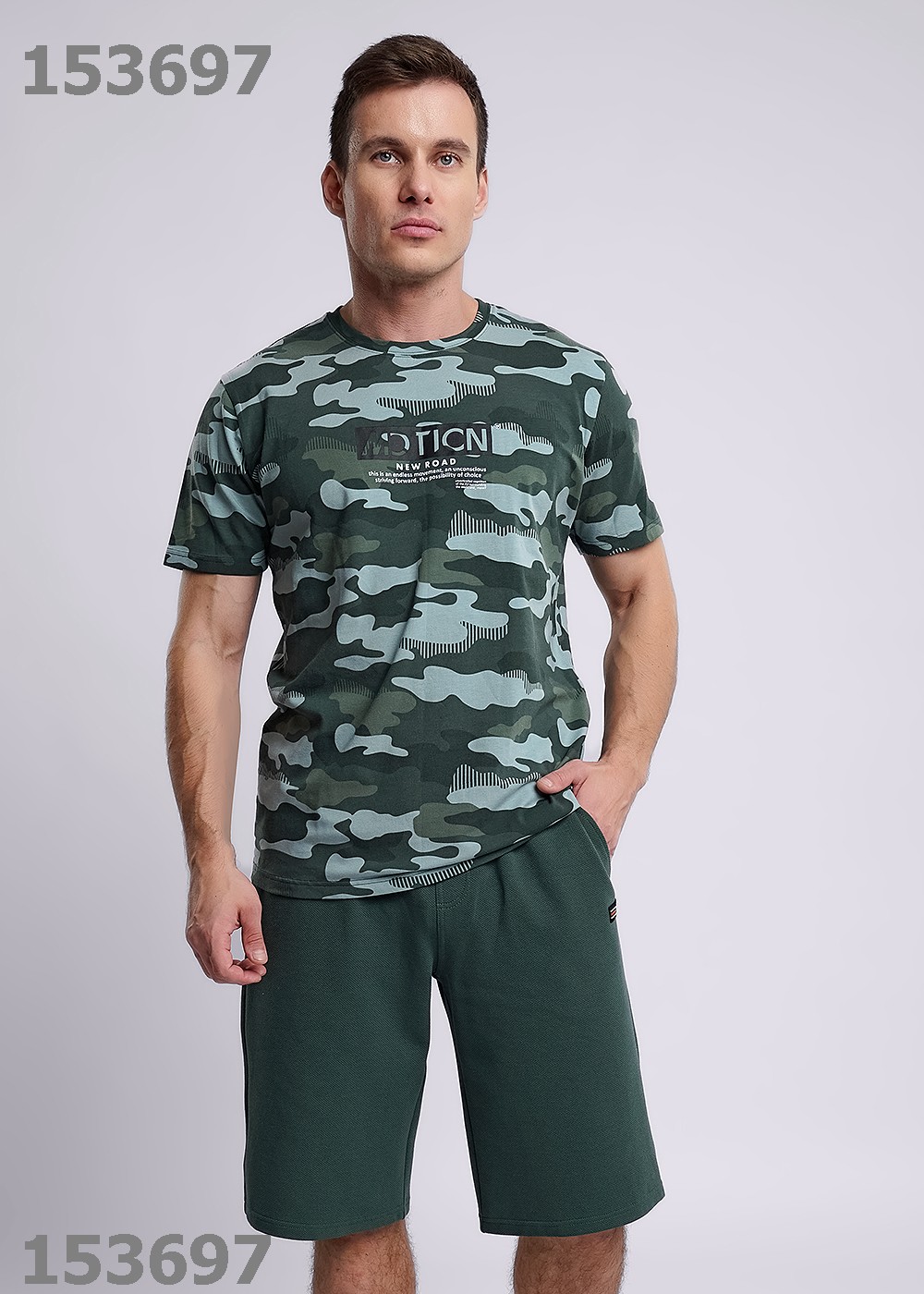 Описание: Стильная мужская футболка из хлопкового полотна с эластаном в камуфляжный рисунок. Оригинальность изделию придает авторский принт и фирменная вшивка. Отличный вариант для прогулок и встреч с друзьями.