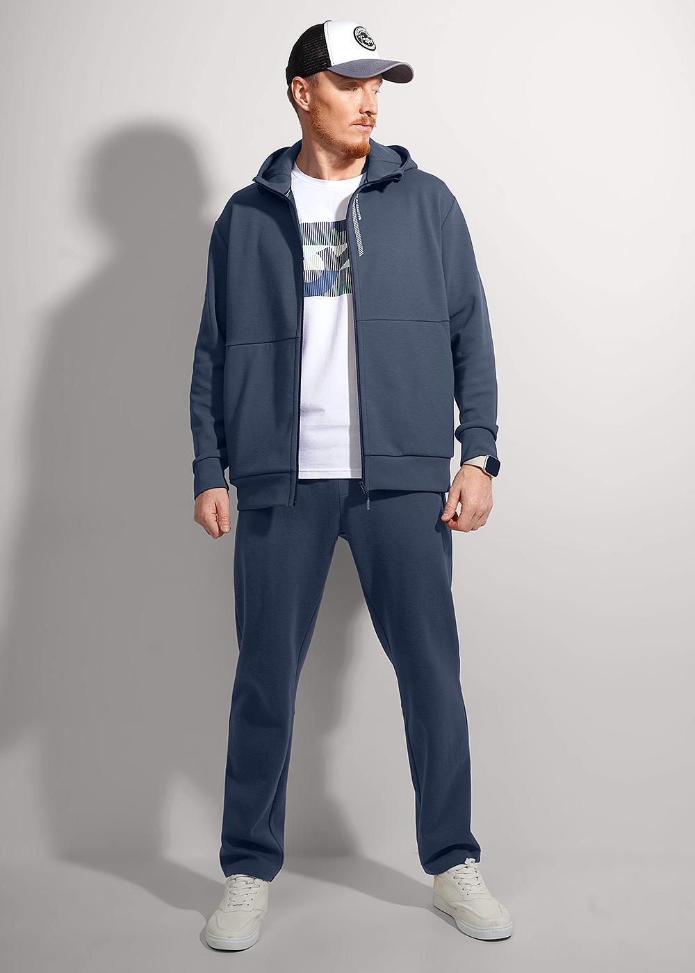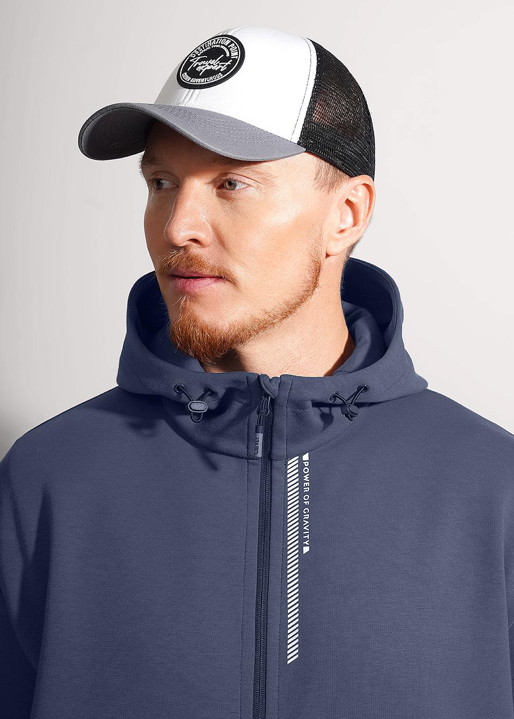 Описание: Куртка мужская с капюшоном, на молнии. Изделие выполнено из плотного трикотажного полотна. Модель с вместительными накладными карманами и дизайнерским принтом. Удобный и практичный вариант на каждый день.