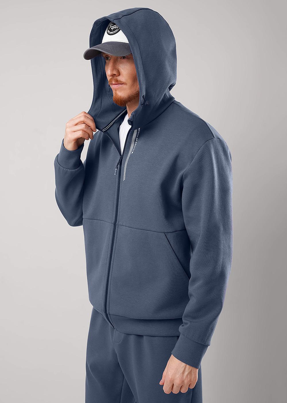 "Описание: Куртка мужская с капюшоном, на молнии. Изделие выполнено из плотного трикотажного полотна. Модель с вместительными накладными карманами и дизайнерским принтом. Удобный и практичный вариант на каждый день.