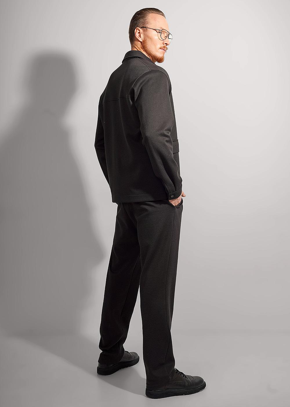 Описание: Мужская куртка-рубашка выполнена из фактурного трикотажного полотна, свободного силуэта с отложным воротником и застежкой на кнопки. Модель дополнена накладными карманами. По низу рукава манжета. Отлично подойдет для работы и учебы.