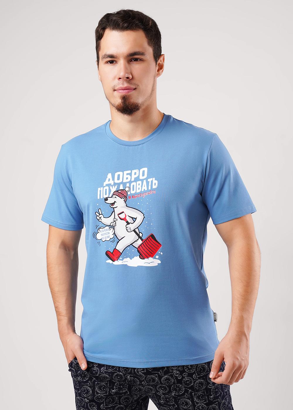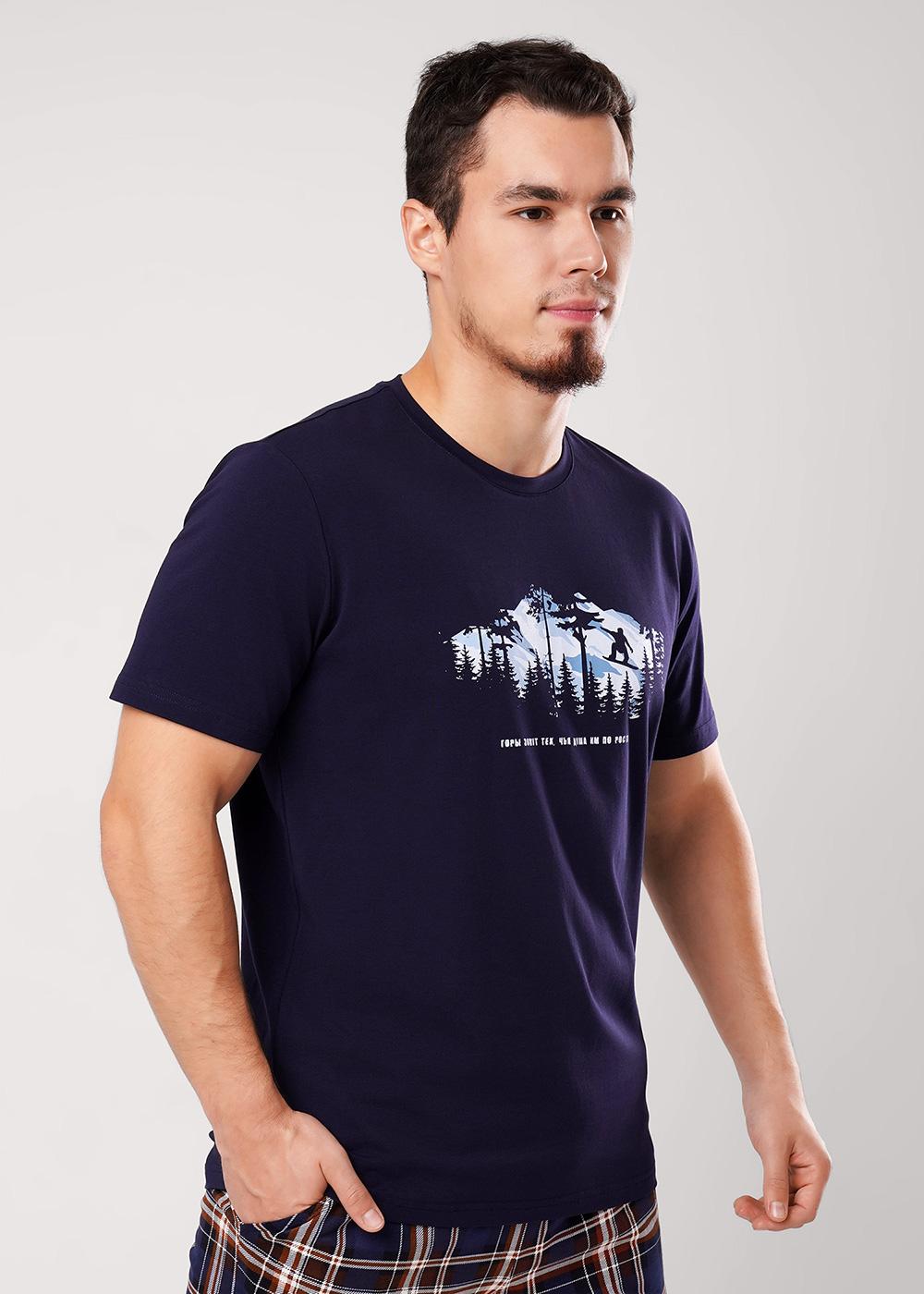 "Описание: Футболка мужская с коротким рукавом и округлой горловиной, из дышащего хлопкового трикотажного полотна с добавлением эластана для прочности. Оригинальность модели придаёт авторский принт. Создай свой стильный образ вместе с Clever .