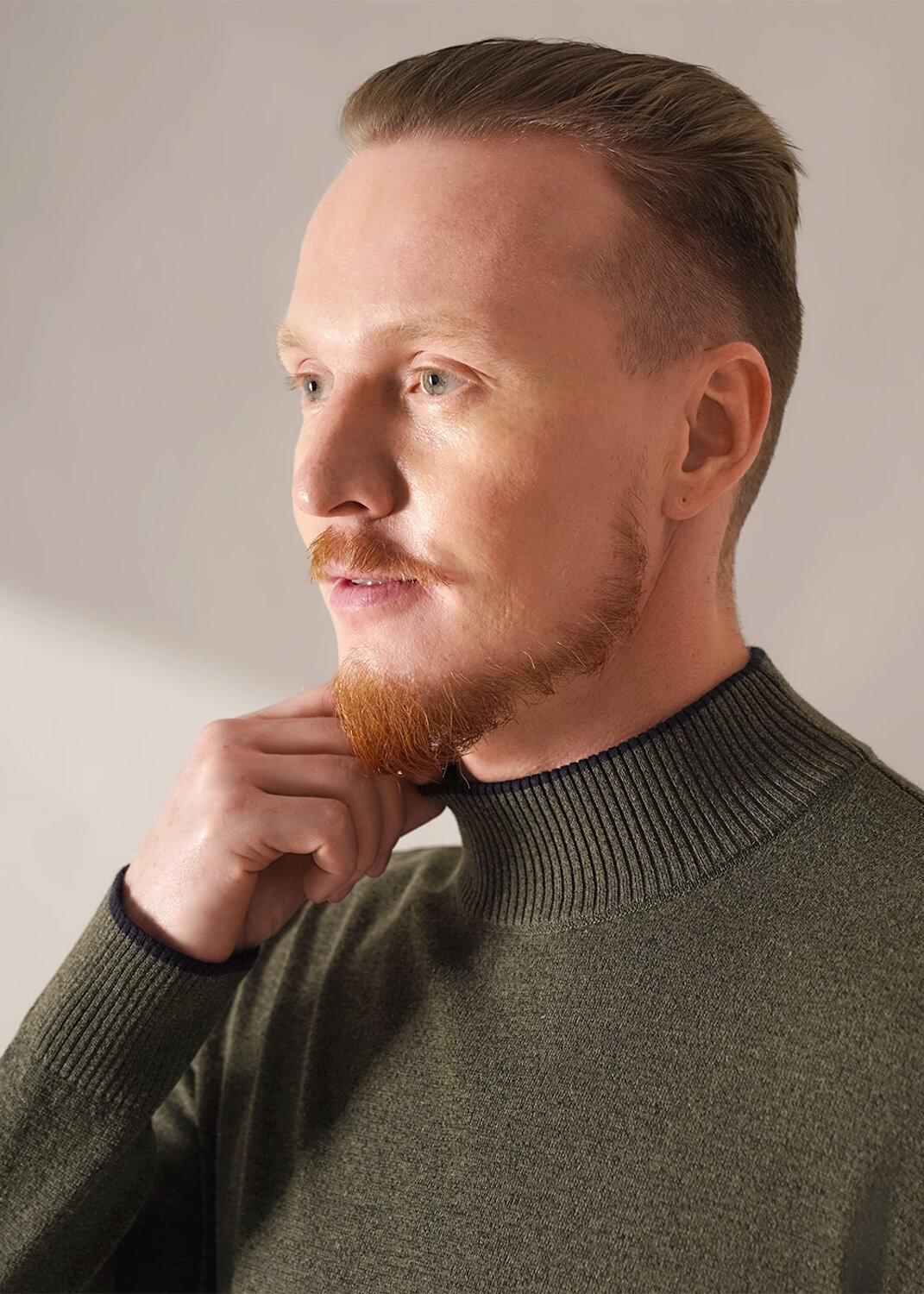 Джемпер мужской из смесовой хлопковой пряжи с длинным рукавом и воротником стойкой. Прекрасно сохраняет тепло, комфортный в носке, отличное решение на прохладное время года. Комбинируется с джинсами или брюками.