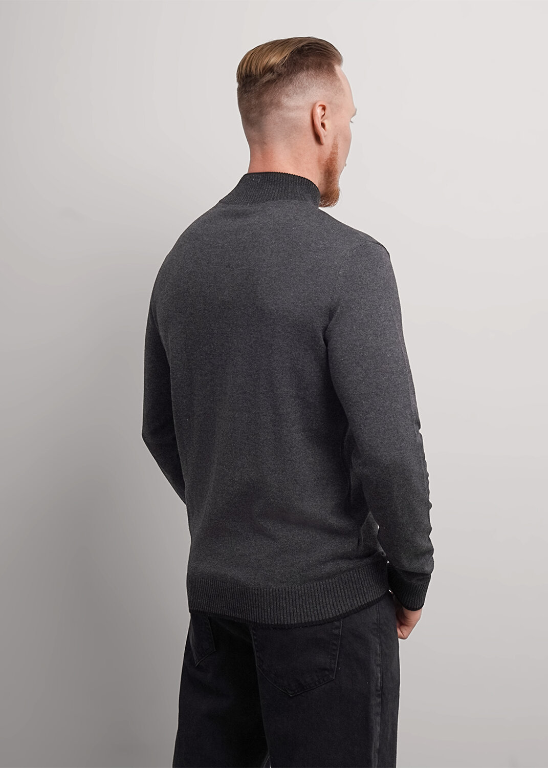 Джемпер мужской из смесовой хлопковой пряжи с длинным рукавом и воротником стойкой. Прекрасно сохраняет тепло, комфортный в носке, отличное решение на прохладное время года. Комбинируется с джинсами или брюками.