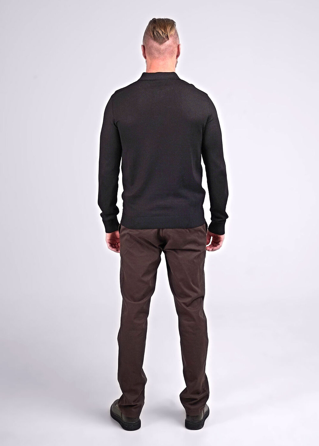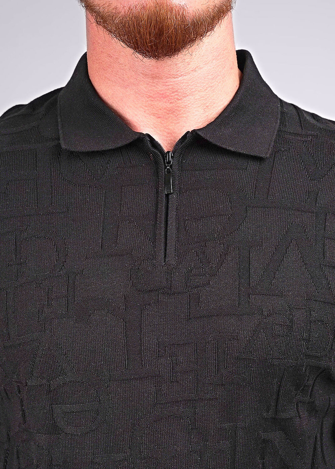 Мужское вязаное поло на молнии с длинным рукавом. Модель связана из приятной хлопковой пряжи с добавлением акрила с вывязанным графическим узором по переду. Изделие можно сочетать как в классическом стиле, так и в повседневном.