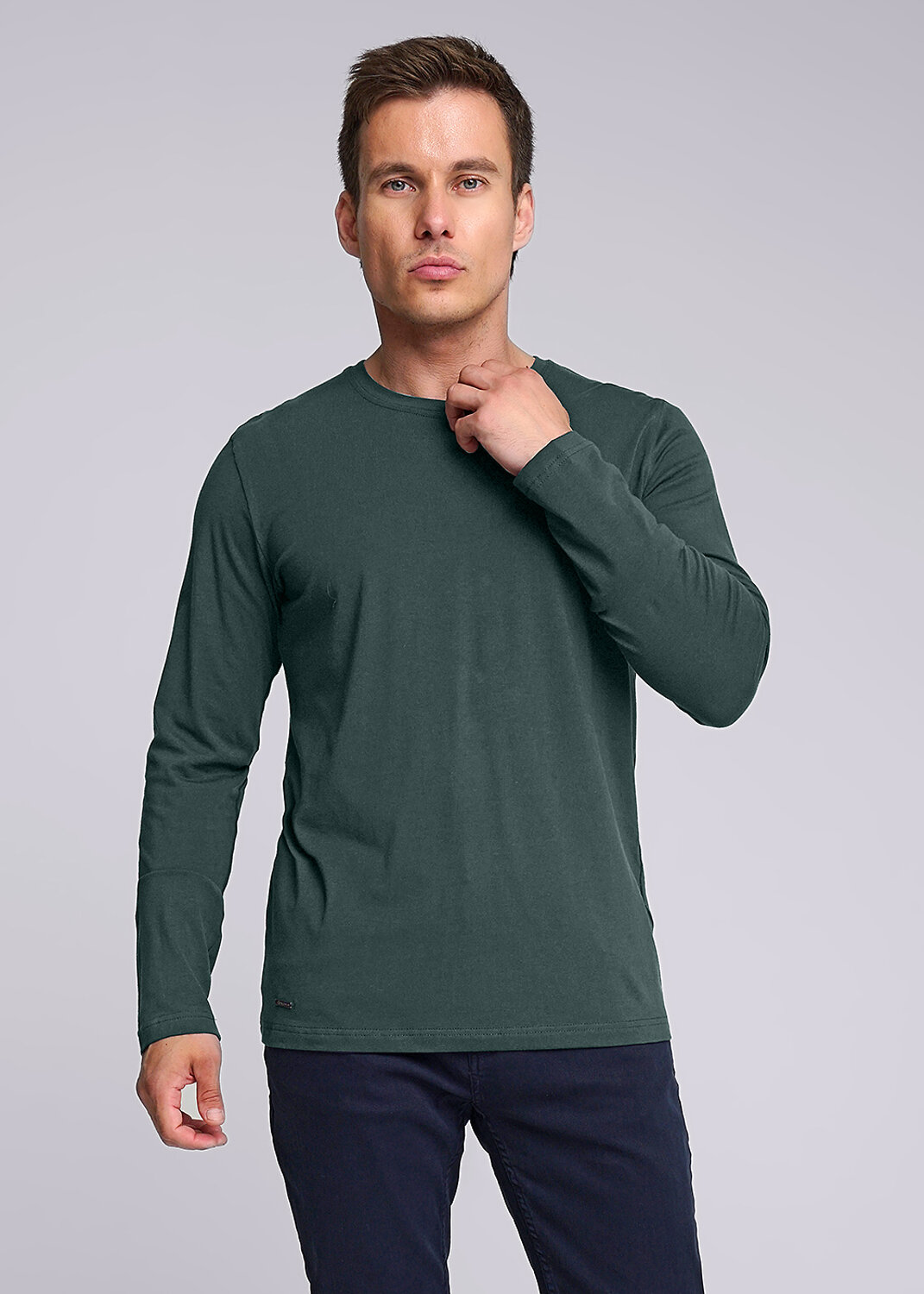 Джемпер прямого силуэта, длинный рукав, круглый вырез горловины обработан обтачкой. Изделие выполнено из натурального полотна с добавлением эластана для удобства ношения.