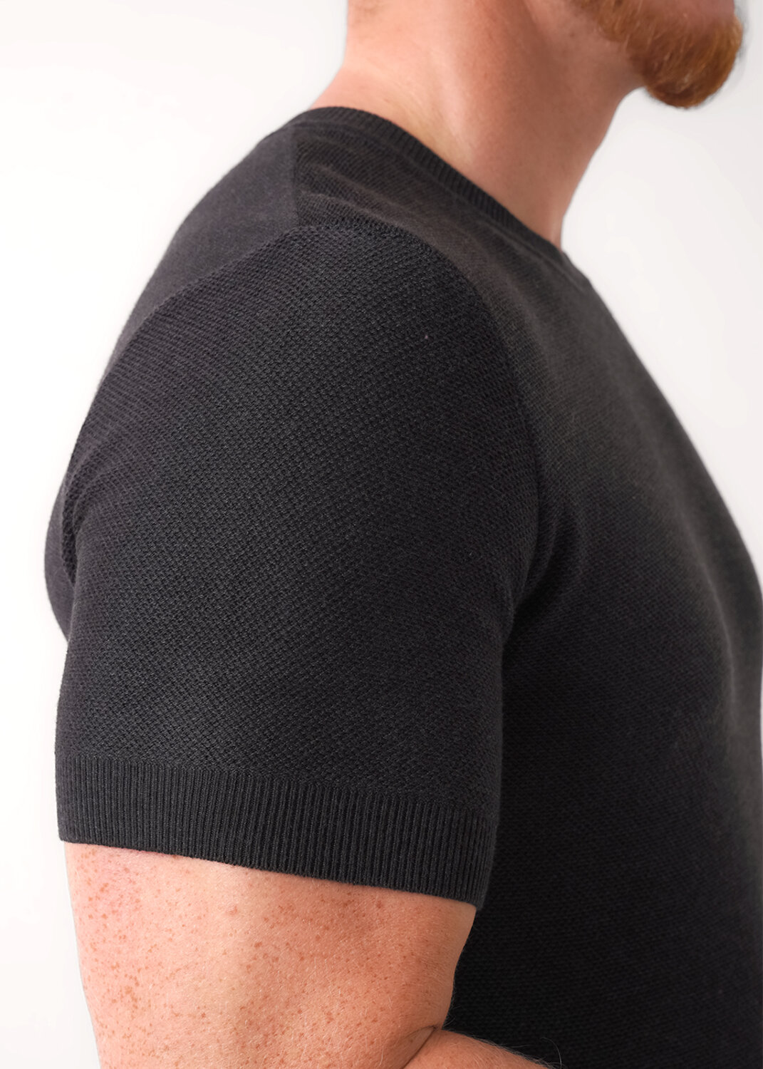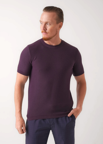 Вязаная футболка с коротким рукавом, выполненная из смесовой пряжи, обладает фактурным переплетением, которое придает ей стильный и современный вид. Эта модель прекрасно сочетается с джинсами, брюками позволяя создавать разнообразные образы.