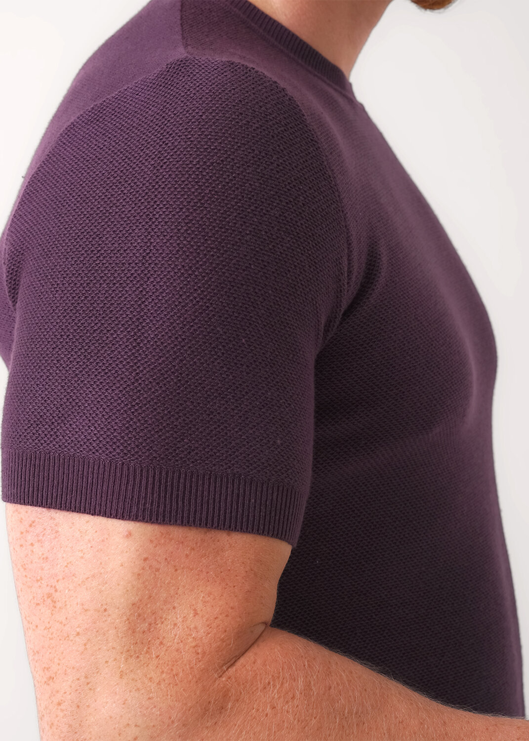 Вязаная футболка с коротким рукавом, выполненная из смесовой пряжи, обладает фактурным переплетением, которое придает ей стильный и современный вид. Эта модель прекрасно сочетается с джинсами, брюками позволяя создавать разнообразные образы.