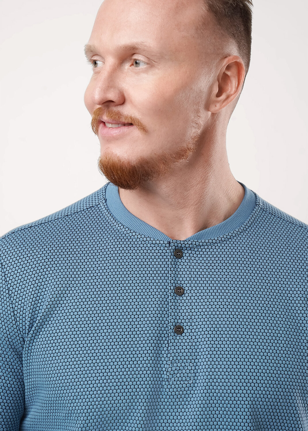 Джемпер из трикотажного фактурного полотна "ячейка". Изделие с удобной планкой на пуговицы и дополнено дизайнерским принтом. Данная модель отличное дополнение к брюкам или джинсам. Прекрасно подойдёт для встречи с друзьями.