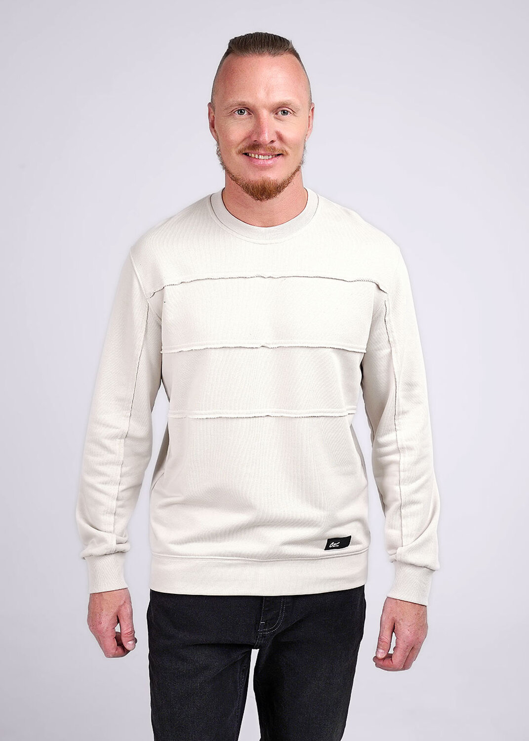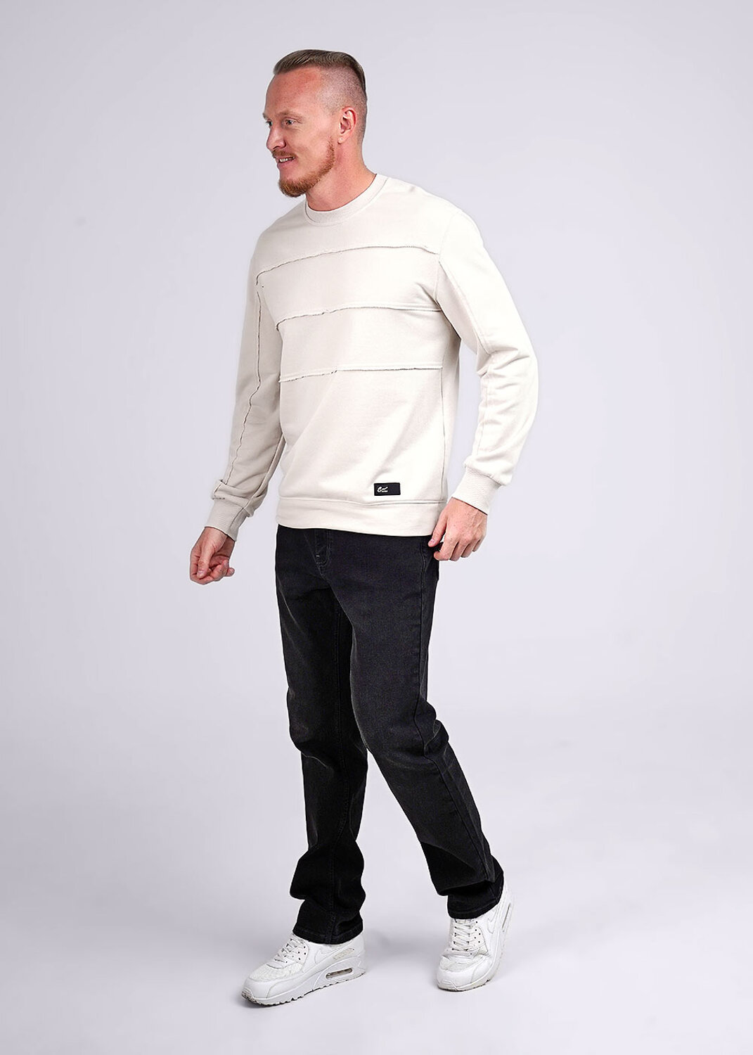 Стильный мужской джемпер из хлопкового трикотажного полотна. Изделие с круглым вырезом горловины и длинным двухшовным рукавом на манжете. Модель дополняется за счет необработанных срезов и фурнитуры.Отличный вариант на каждый день и встреч с друзьями.