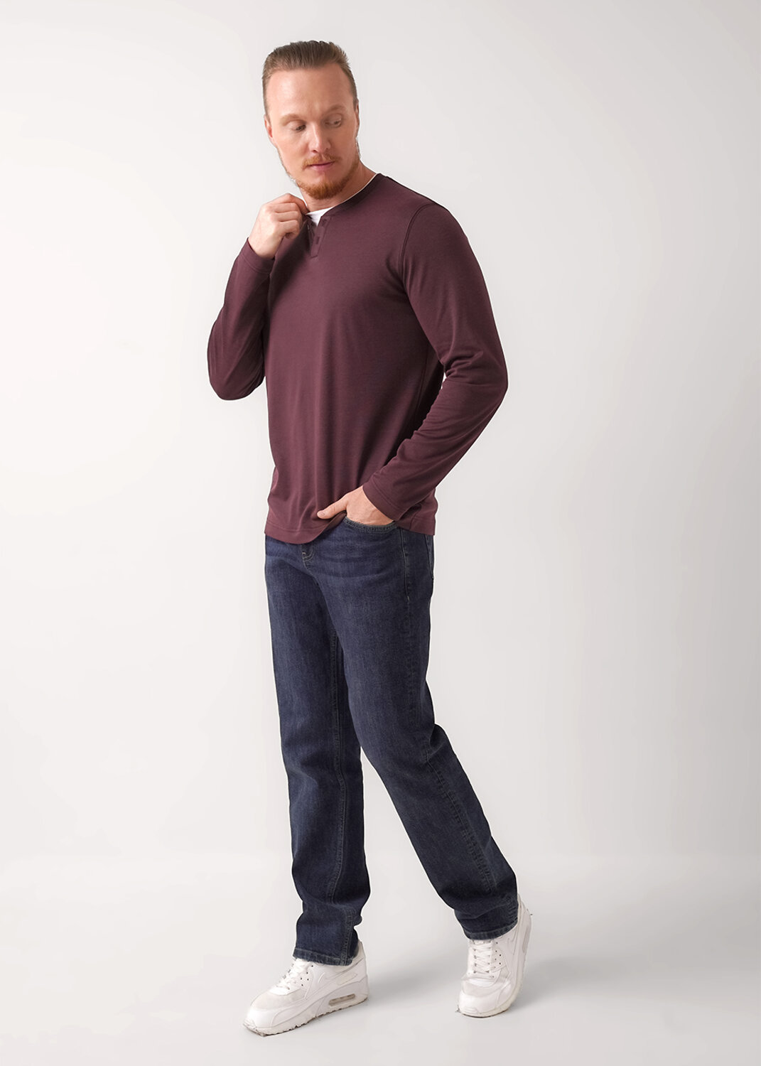 Лонгслив из трикотажного полотна "пике" с имитацией двойной горловины и удобной планкой на пуговицы. Данное изделие отличное дополнение к брюкам или джинсам. Прекрасно подойдёт для встречи с друзьями или похода на работу.