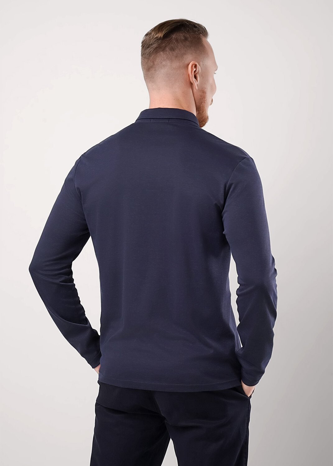 Рубашка-поло с длинным рукавом. Изделие выполнено из трикотажного полотна с кроеным отложным воротником. Модель дополнена имиджевой фурнитурой. Такая рубашка-поло отлично сочетается с брюками или джинсами.
