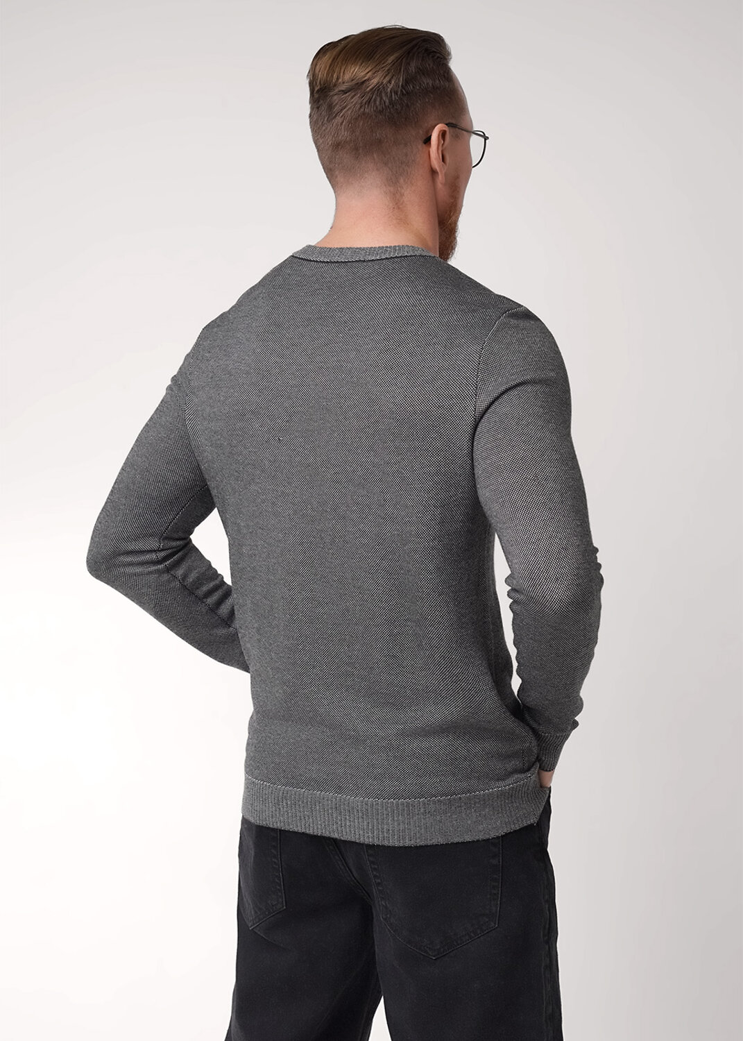 Классический вязаный джемпер с круглой горловиной. Изделие изготовлено из смесовой пряжи с содержанием хлопка. Данный джемпер удачно впишется в повседневный гардероб современного мужчины, привнося тепло, комфорт и элегантность одновременно.