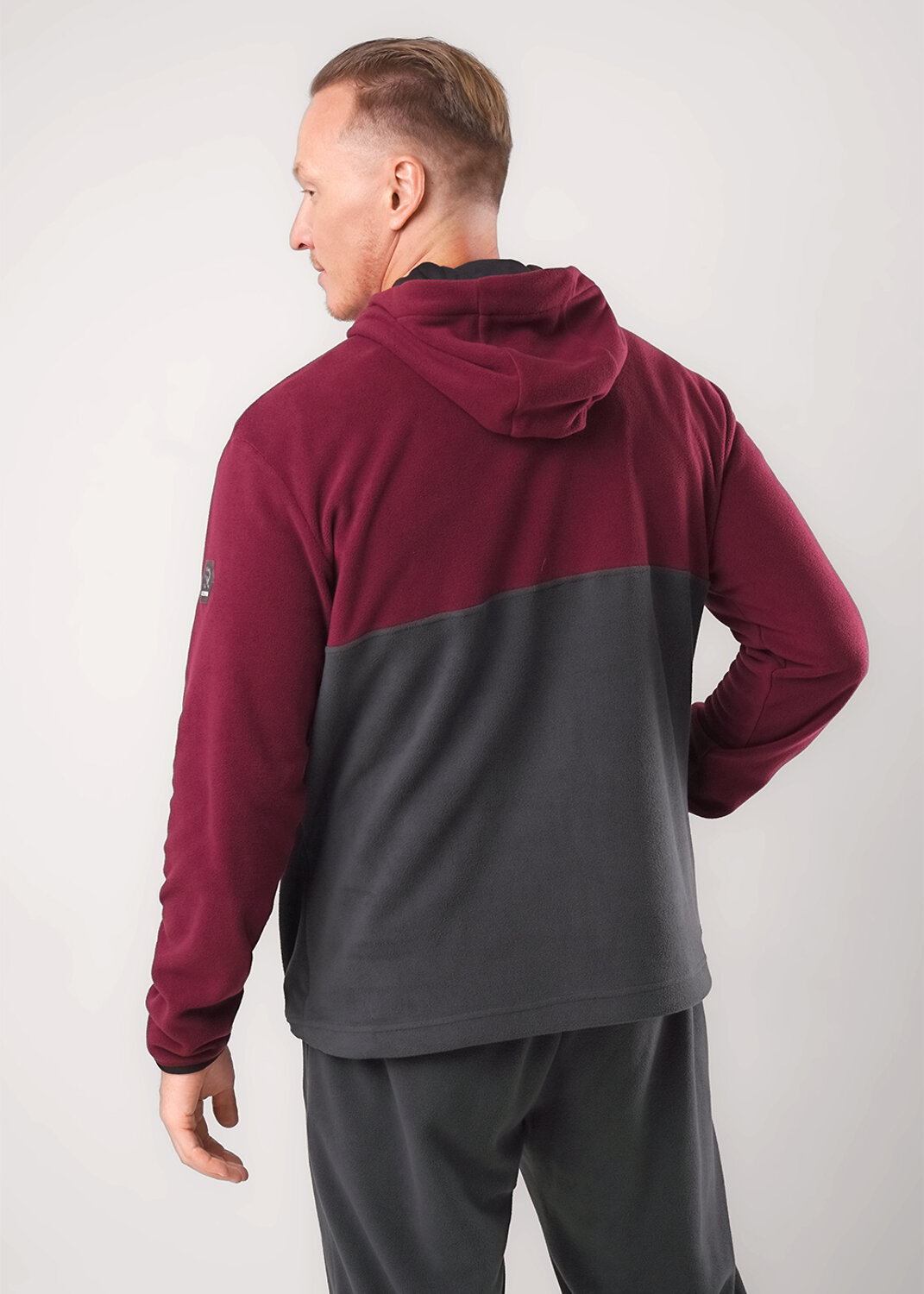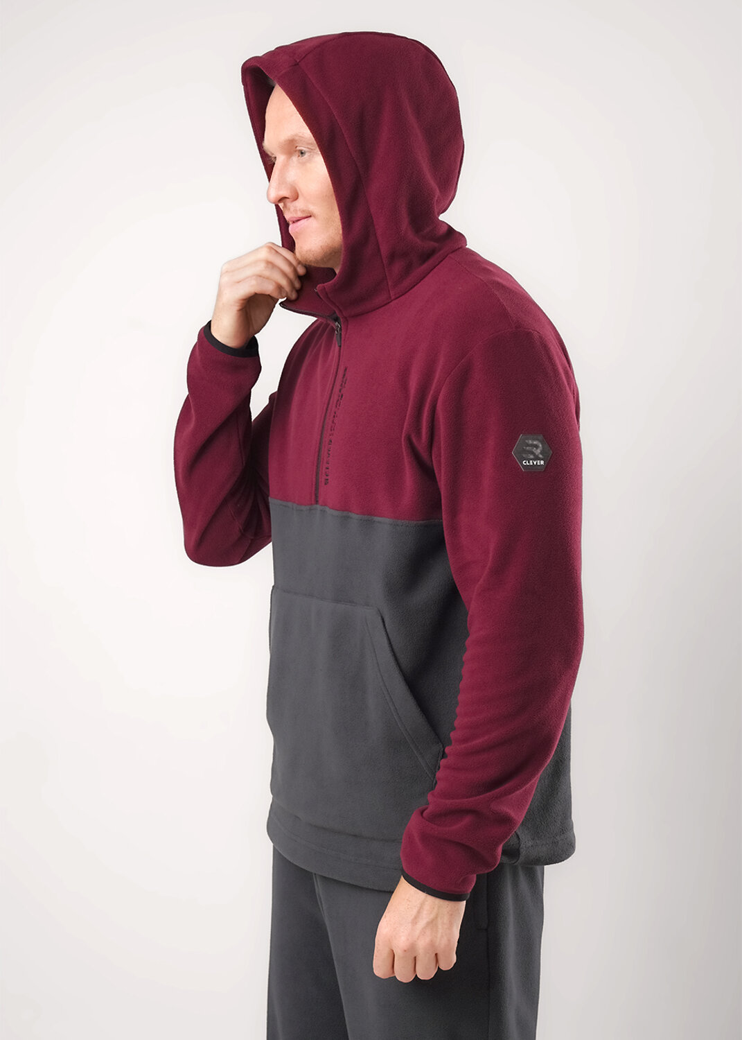 Мужская толстовка выполнена из флиса. Модель с укороченной застежкой на молнию и вместительным карманом, так же дополнена имиджевой вышивкой. Прекрасно подойдёт для холодного времени года.