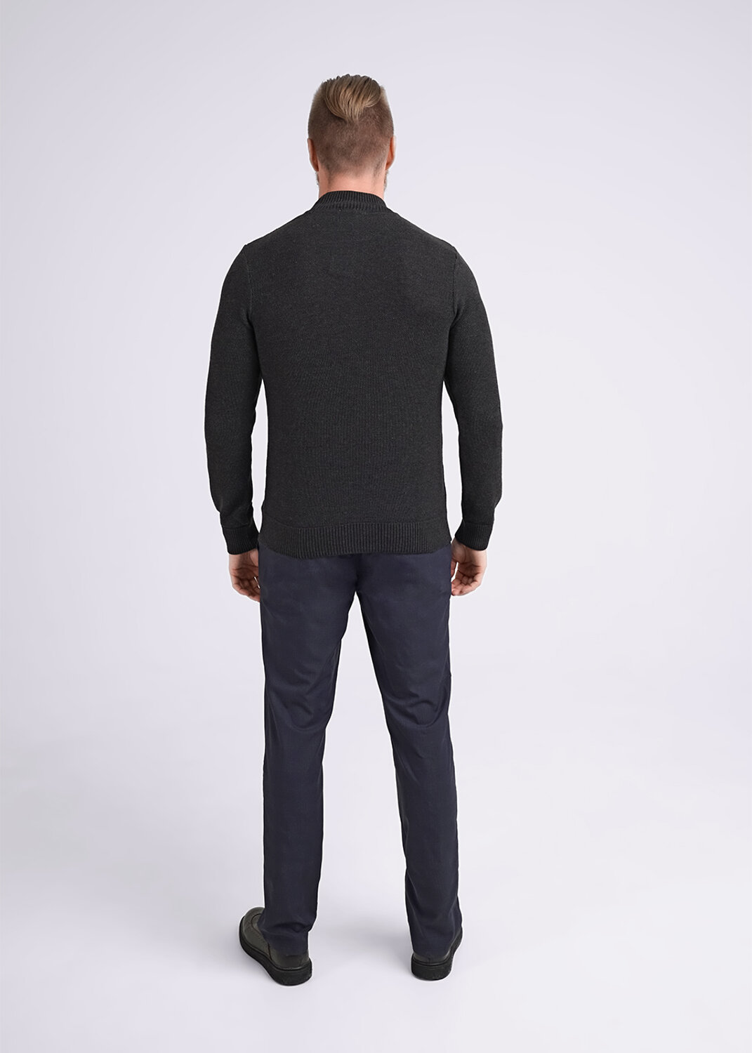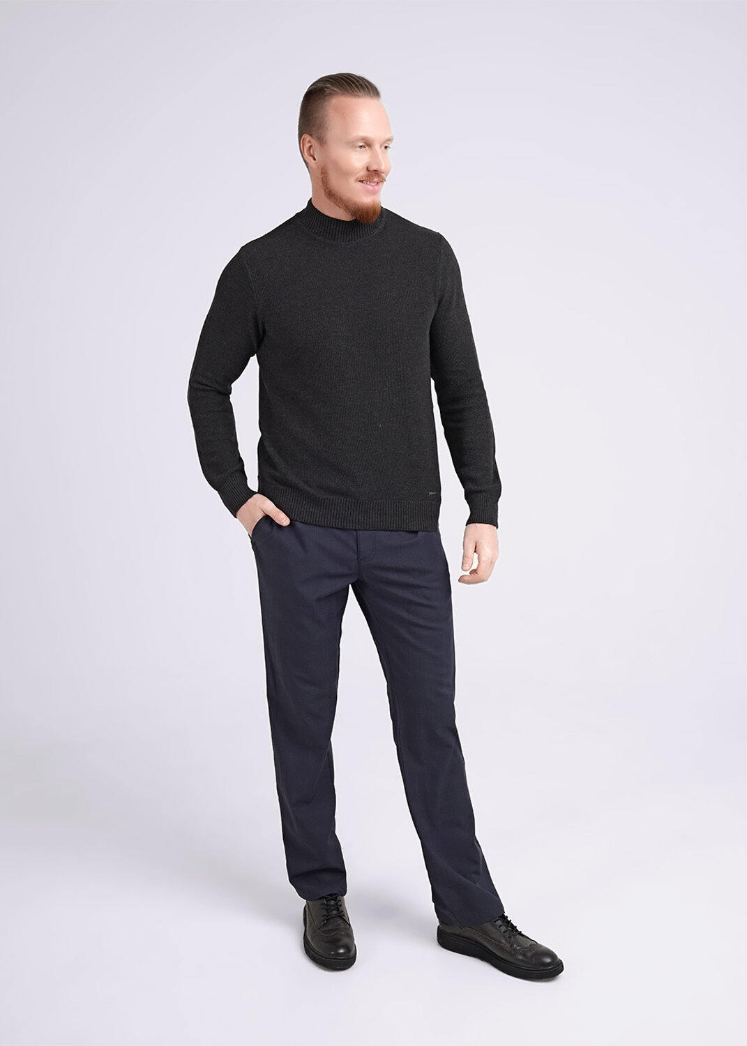 Вязаная водолазка с воротником стойкой, с фактурным переплетением из смесовой пряжи с хлопком. Удачно впишется в повседневный гардероб современного мужчины, принося тепло, комфорт и элегантность одновременно.
