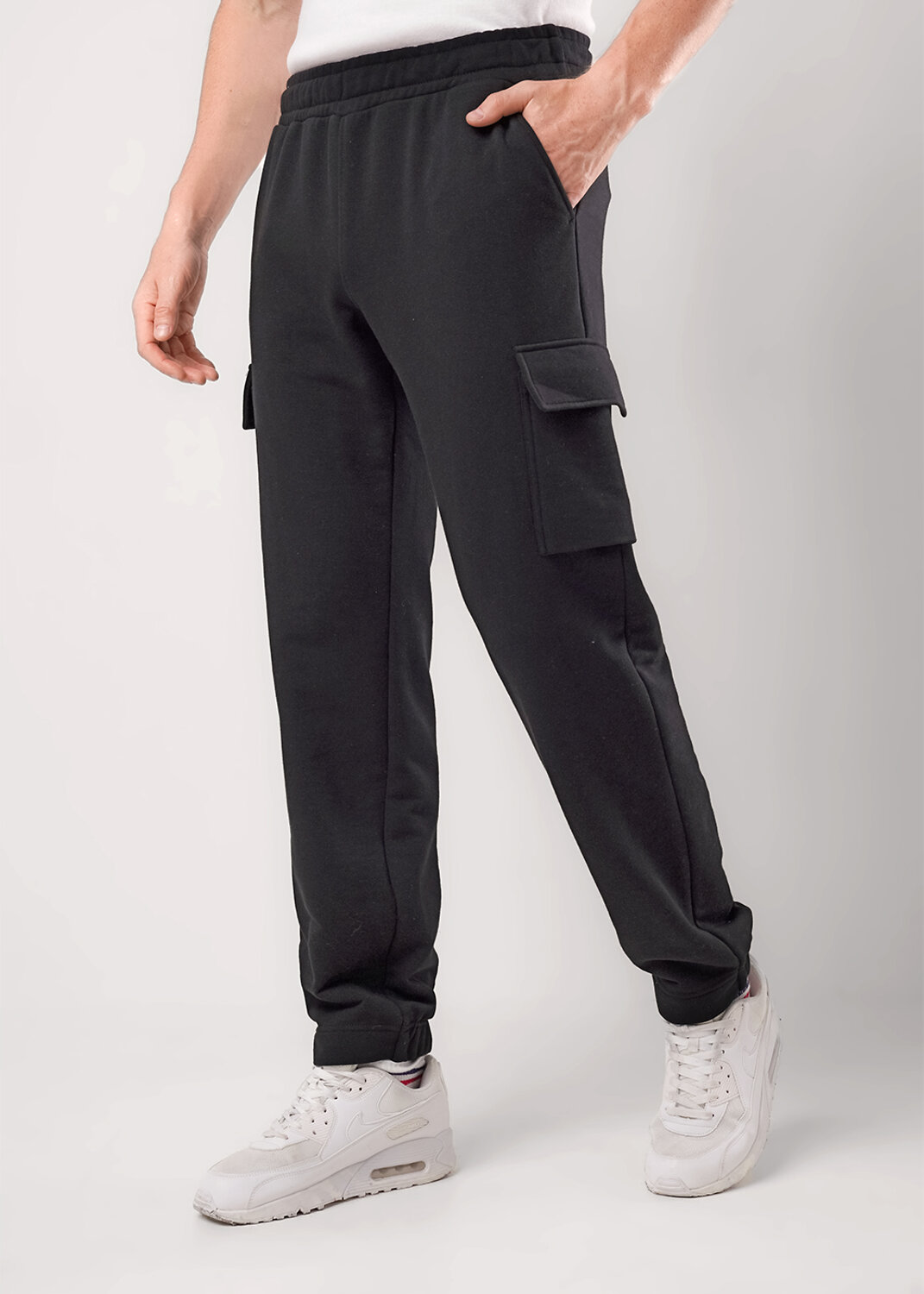 Брюки мужские карго на комбинированной манжете из трикотажного полотна футер 3-х нитка с регулируемой талией. Функциональность модели придают боковые карманы. Брюки эргономичные и удобные.